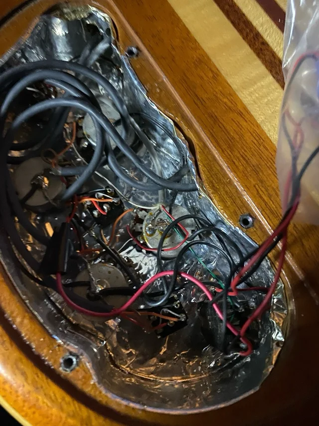 Regler: 2 x Lautstärke, 2 x Ton, 2 Dreiwege-Mini-Schalter („Tone Character“), Vierwege-Drehschalter für die Tonabnehmerwahl