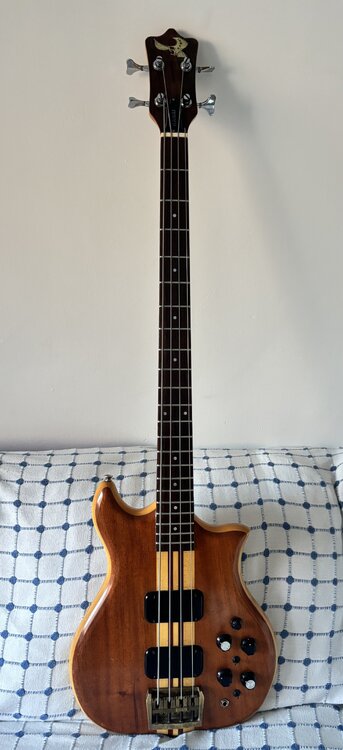 Dieser außergewöhnliche, meisterhaft gefertigte Kawai ist eindeutig vom Alembic-Design inspiriert und verfügt über eine durchgehende Halskonstruktion