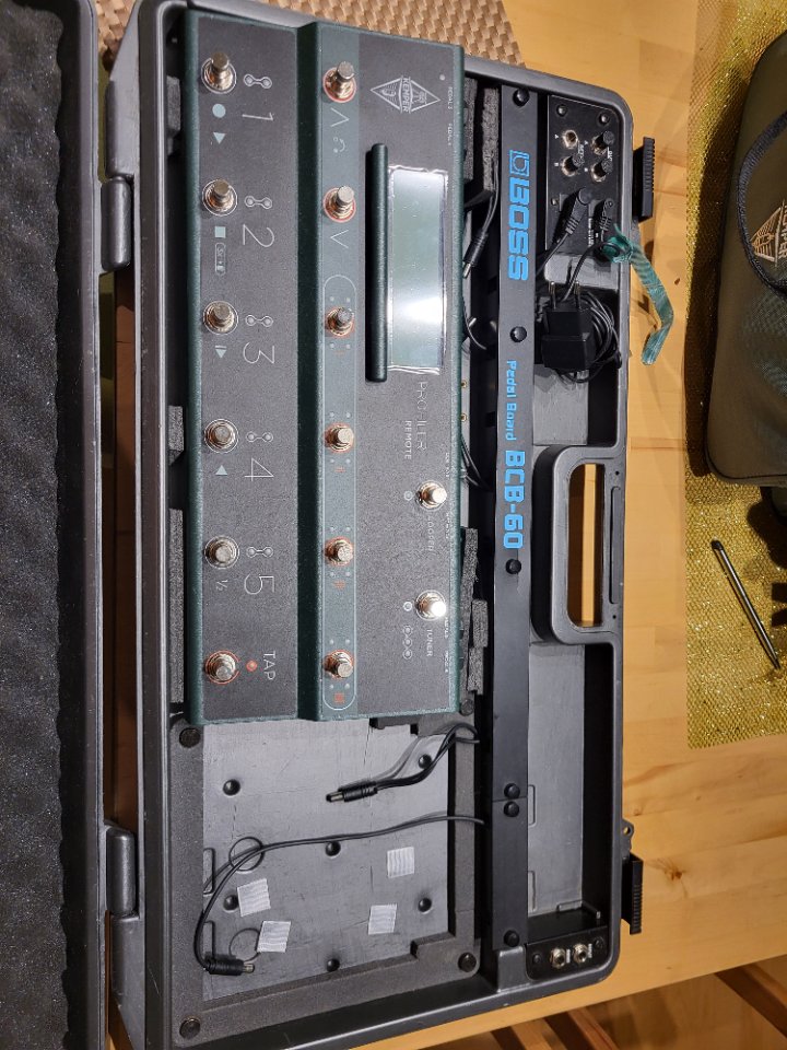 Passend dazu gibt es einen Remote mit entsprechenden Kabel und Case von Boss.