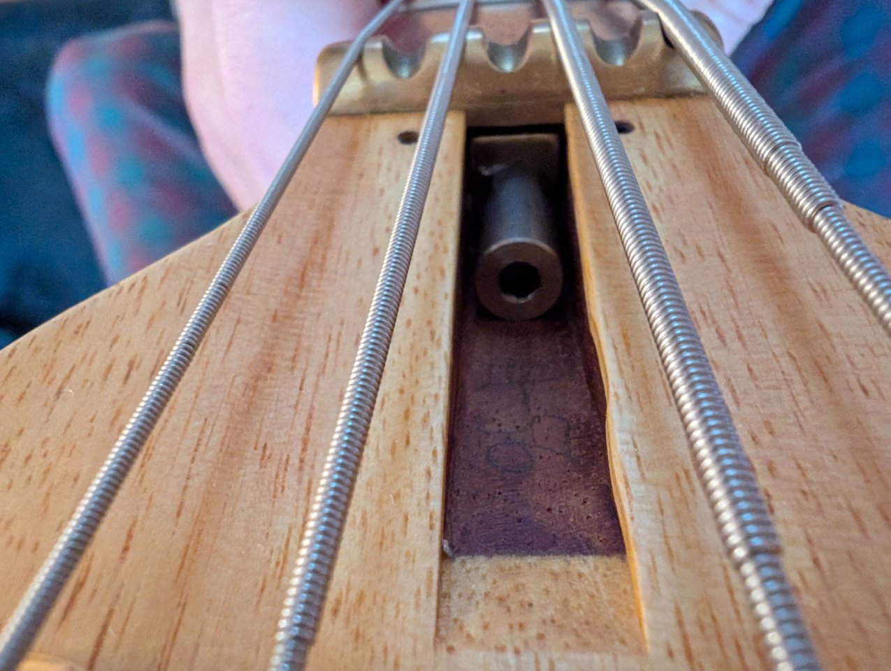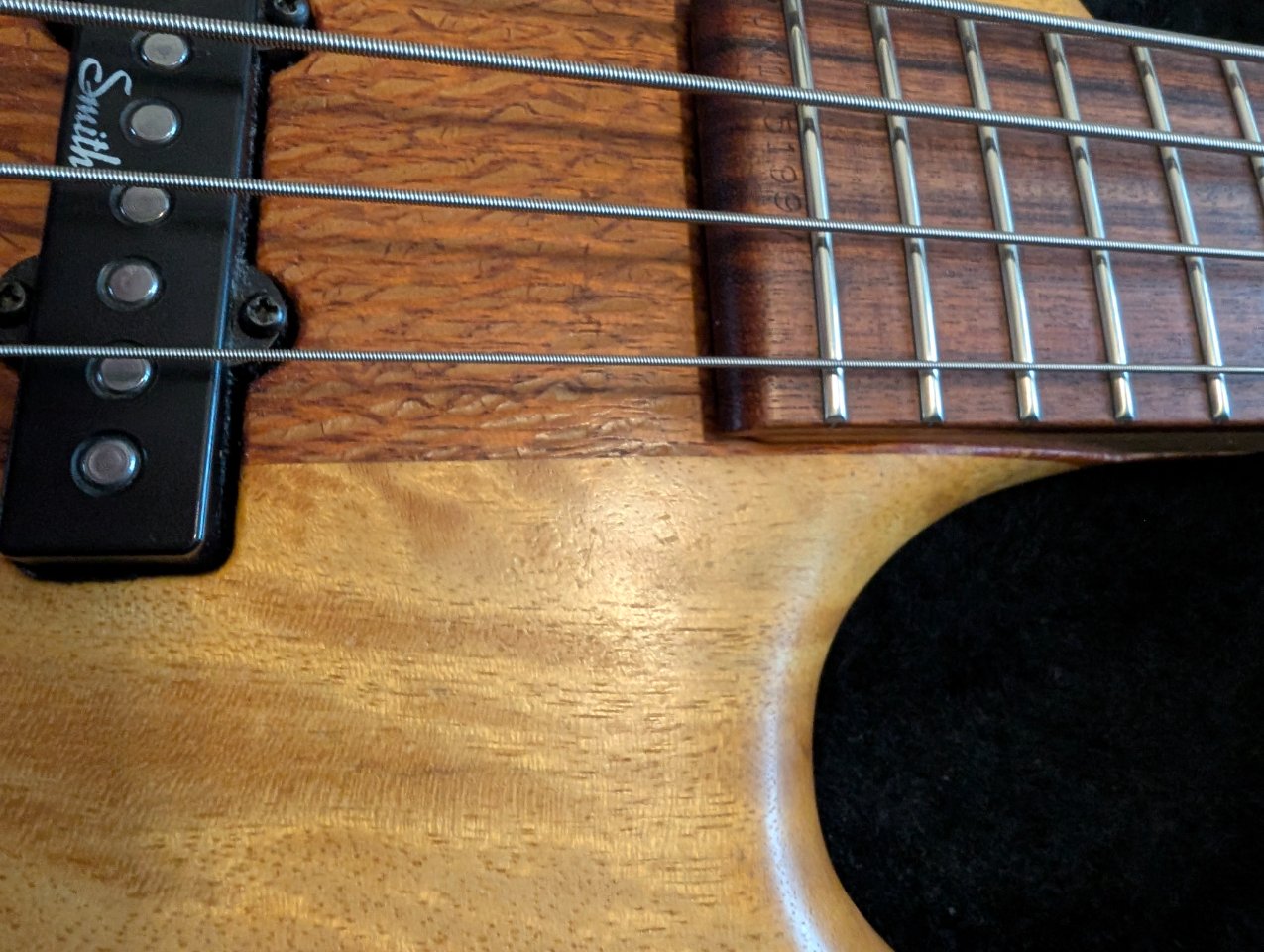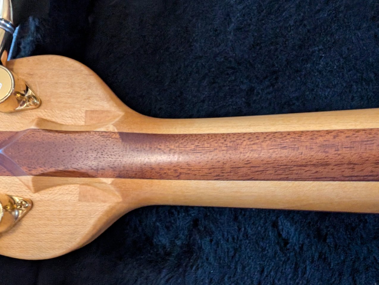 You can feel a little bit of the seam between the laminations in the neck. Remember that this is a wax/oil finish and there are different woods in the neck.
