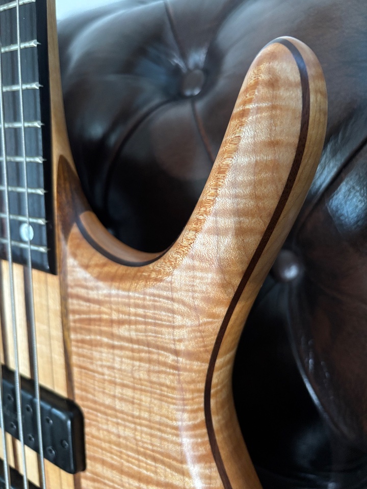 Parallel und Seriell switches pro Pickup. Treble Mids und Bass Regler, Balance, Volumen Push pull mit aktiv passiv Funktion für batterielosen Betrieb Bünde perfekt, Bespiebarkeit mühelos und absolut grandios. Gewicht ca 4,6 kg perfekt ausbalanciert.