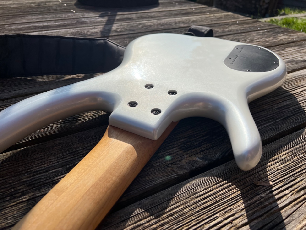 ich habe ihn aufwändig beim Gitarrenbauer meines Vertrauens lackieren lassen weil mir das Nussbaum nicht gefiel. Nun ist es ein "Bühnen-Knaller", hat bei mir allerdings nur den Proberaum gesehen.