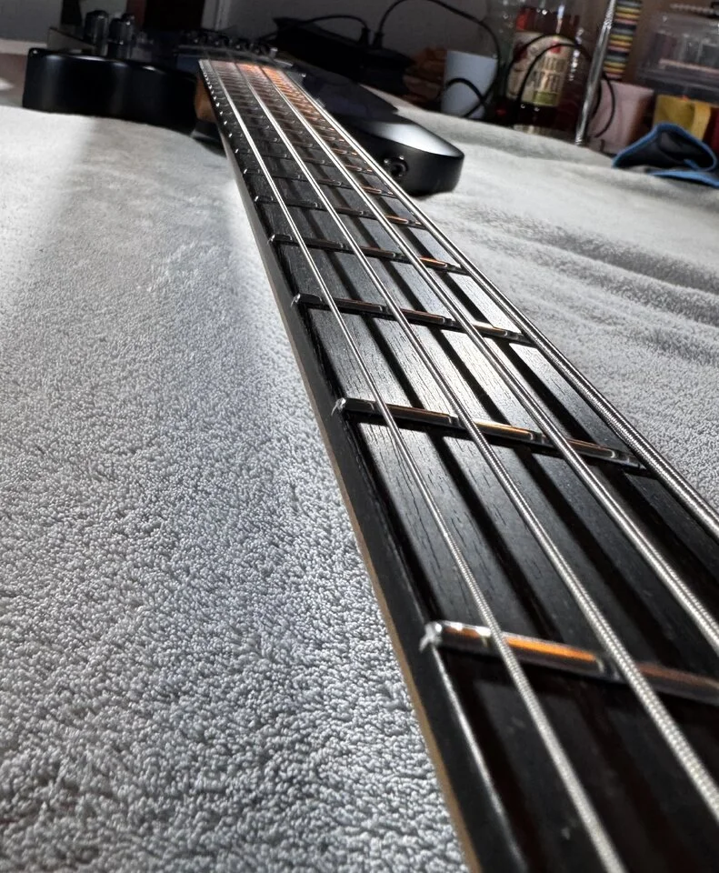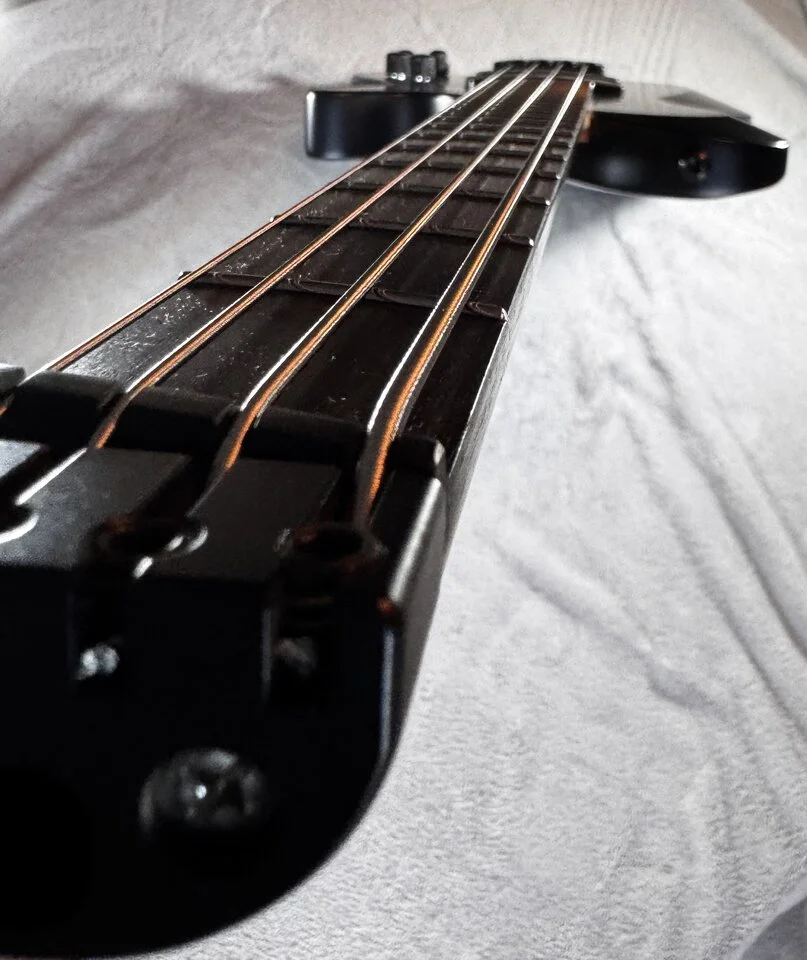 - einteiliger geschraubter roasted Maple/ Ahorn Headless Hals mit Graphitstäben zur Stabilisierung. Der Hals ist mit Tung Oil geölt