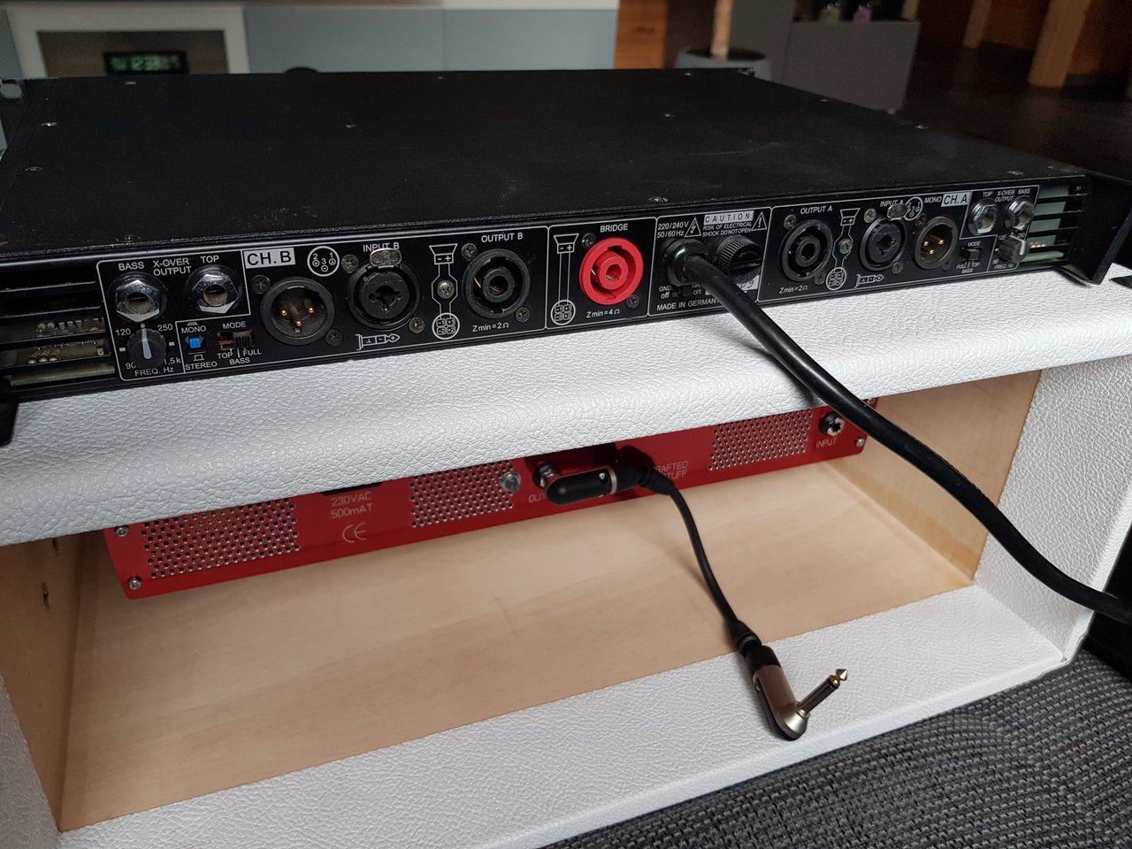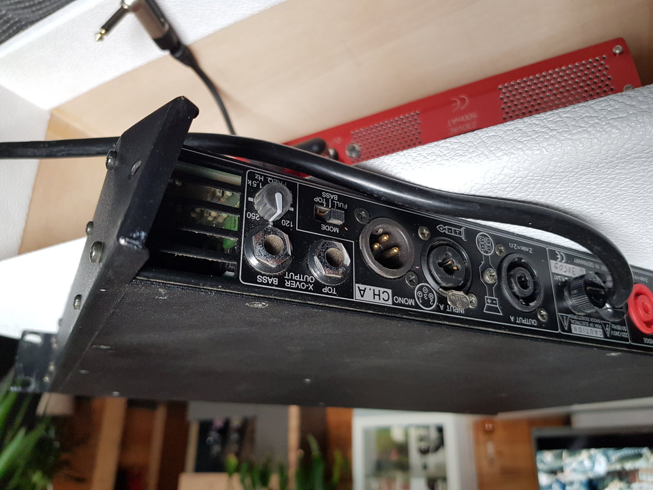 Für Freunde der Red Rock Modus hier das Vorgängermodell der Mutterfirma. 2x600 W an 4 Ohm, 2 Ohm fähig; Class H auf 1 HE und knapp 10kg.