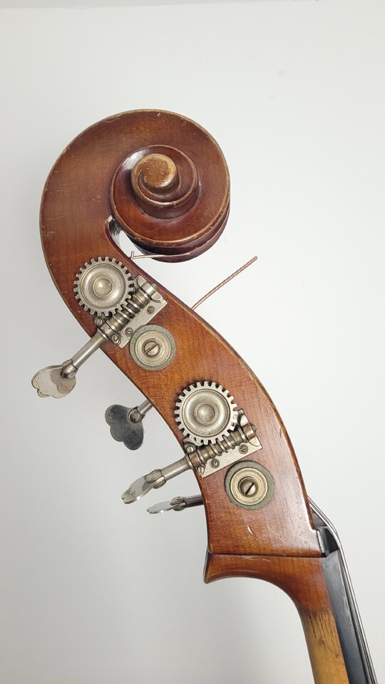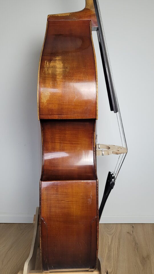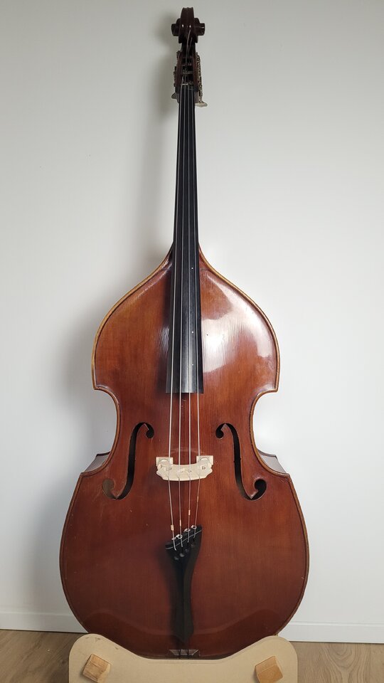 4saitiger Vollholzkontrabass in 7/8-Größe von Alfred Meyer, Baujahr 1952. Hervorragender Zustand, keine offenen Risse oder Beschädigungen, neuer Steg mit Moser-Stegmechanik. D-Mensur, 105cm.