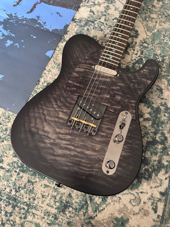Korpus Erle, Esche Top, Ahorn Hals mit Palisander Griffbrett.