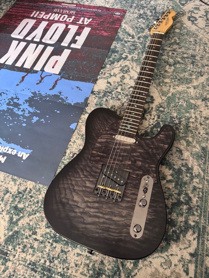 Korpus Erle, Esche Top, Ahorn Hals mit Palisander Griffbrett.