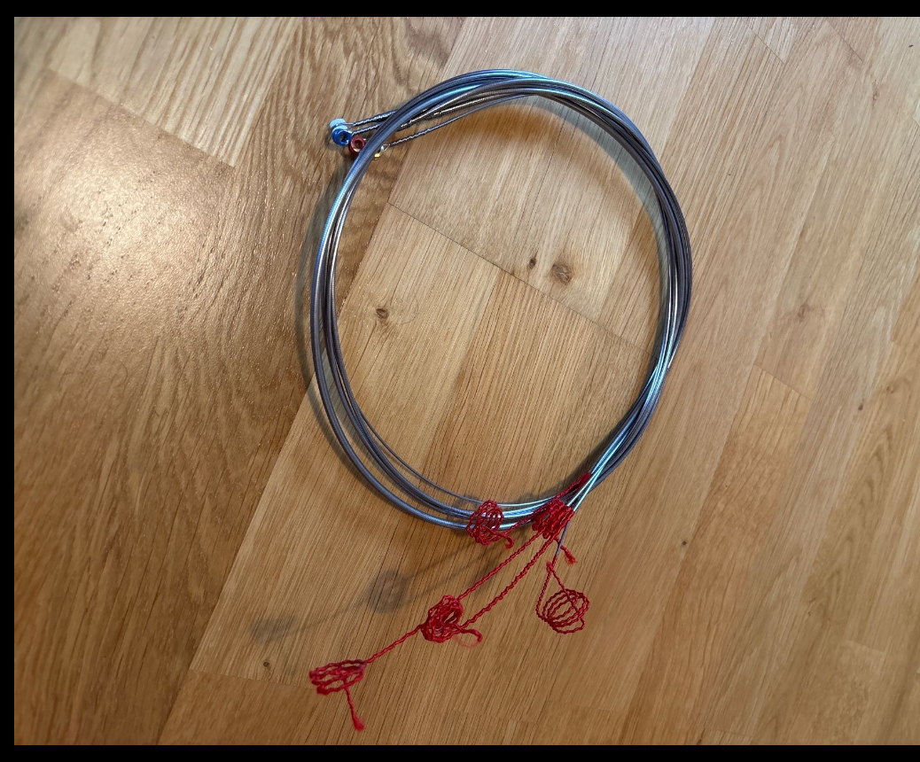 Der Saaitensatz war nur kurz auf einem Fender- ähnlichen Bass (also 4:1) aufgezogen. Noch nicht ganz eingespielt. Zustand sehr gut.