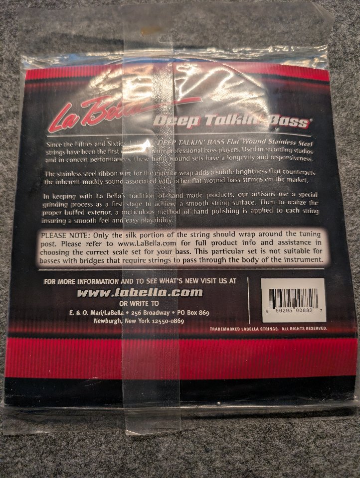 Verkaufe einen neuen, unbenutzten, noch eingeschweißten 4er Satz La Bella Flat Wound Saiten.