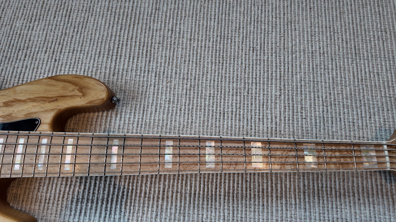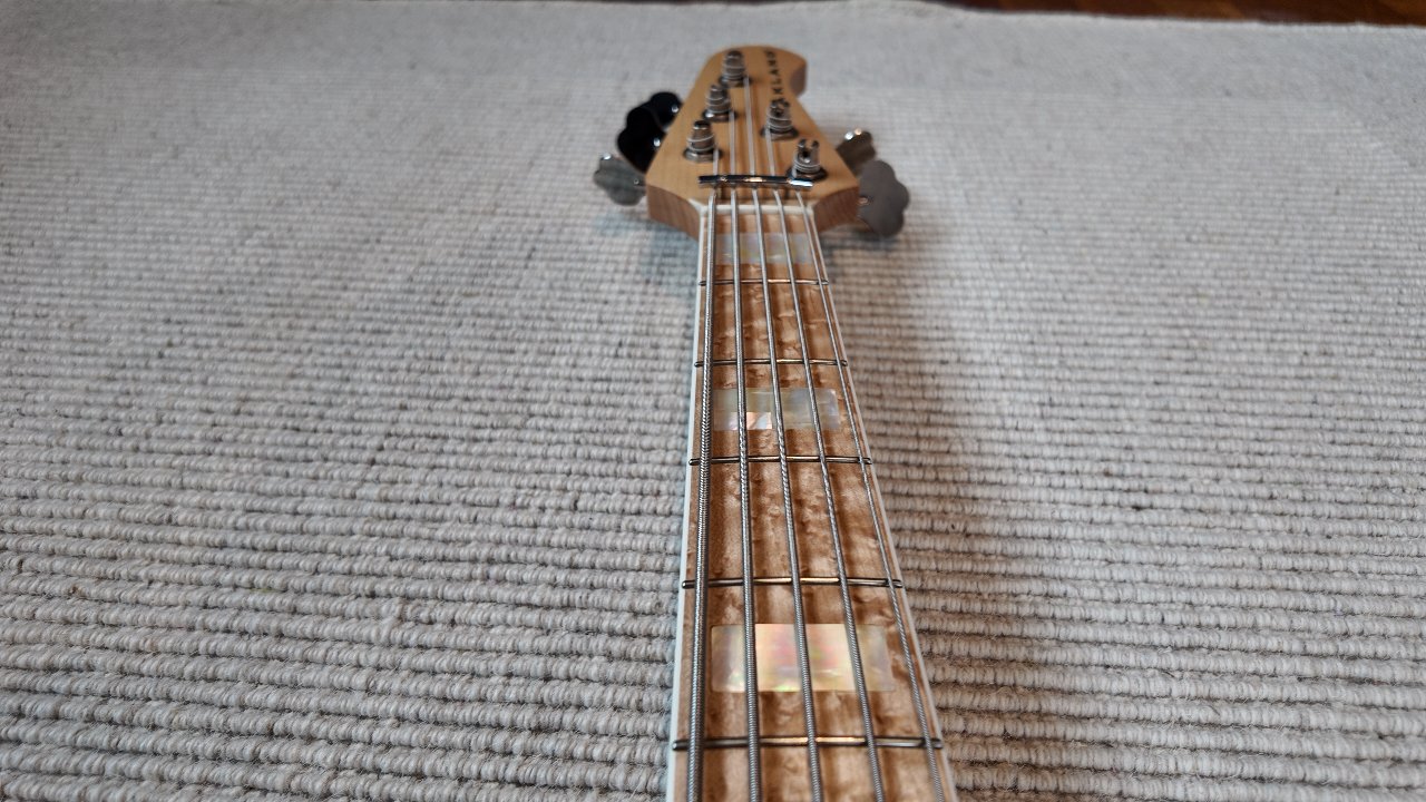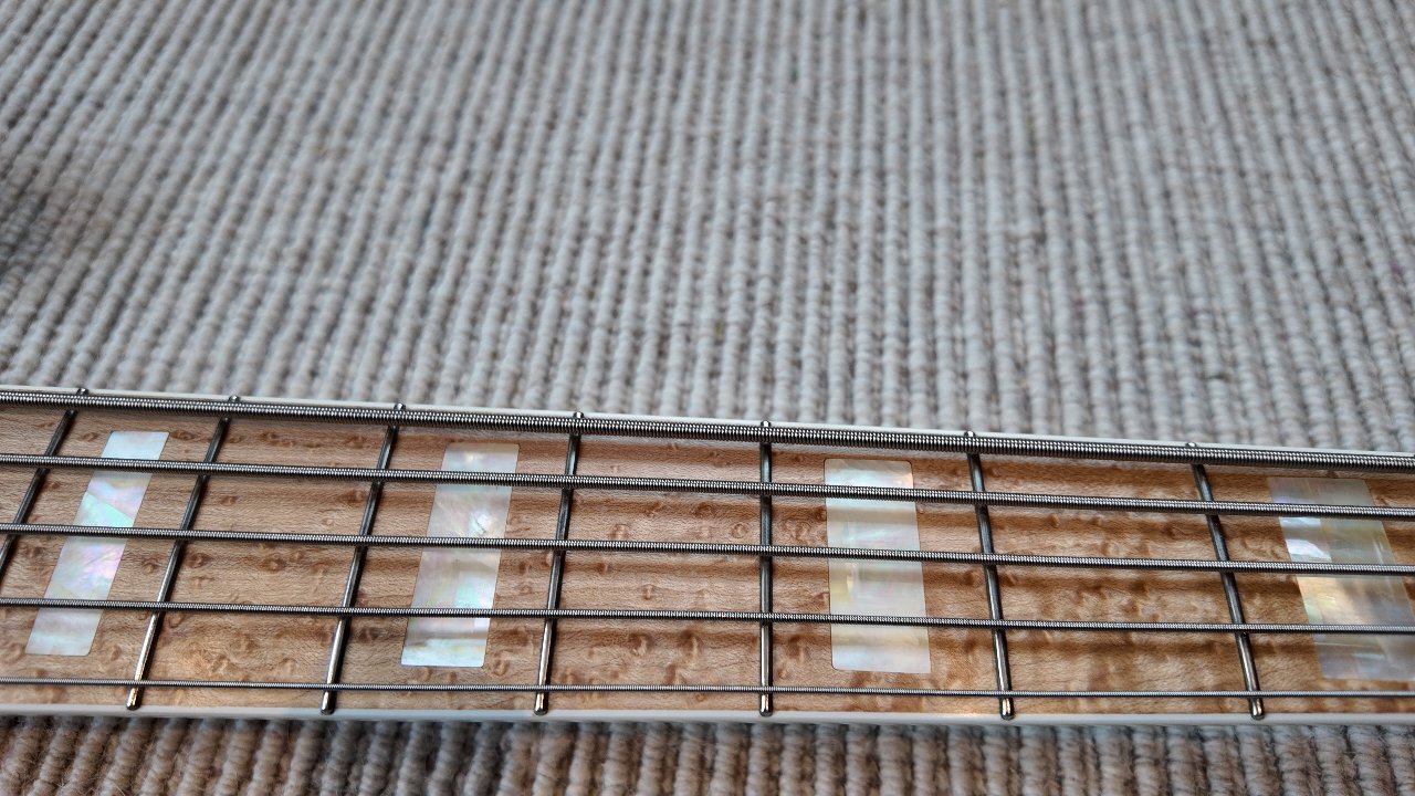 - Griffbrett: high grade birdseye maple, Blockinlays (mother of pearl), white binding