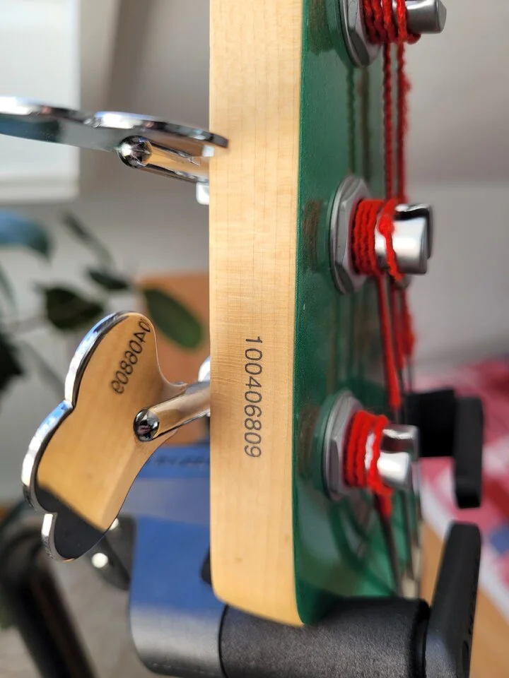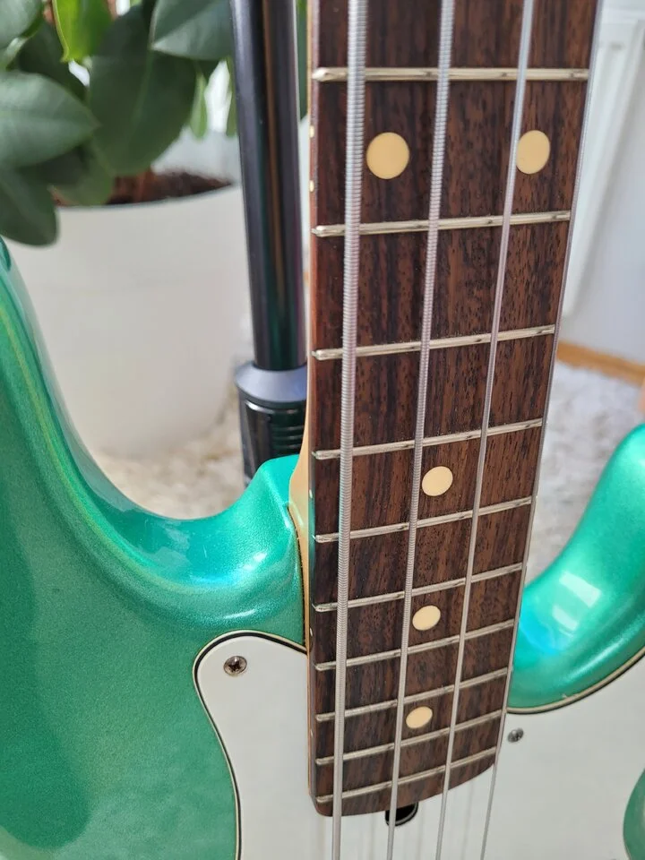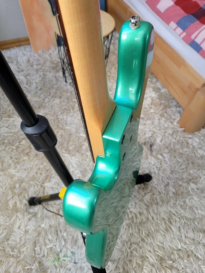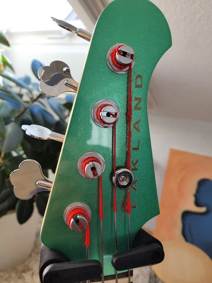 Daher, ich gebe diesen schönen Lakland Bob Glaub mit matched headstock aus der Skyline Serie ab. Ich glaube, das war eine Art FSR. Aktuell mit Thomastiks bespannt.