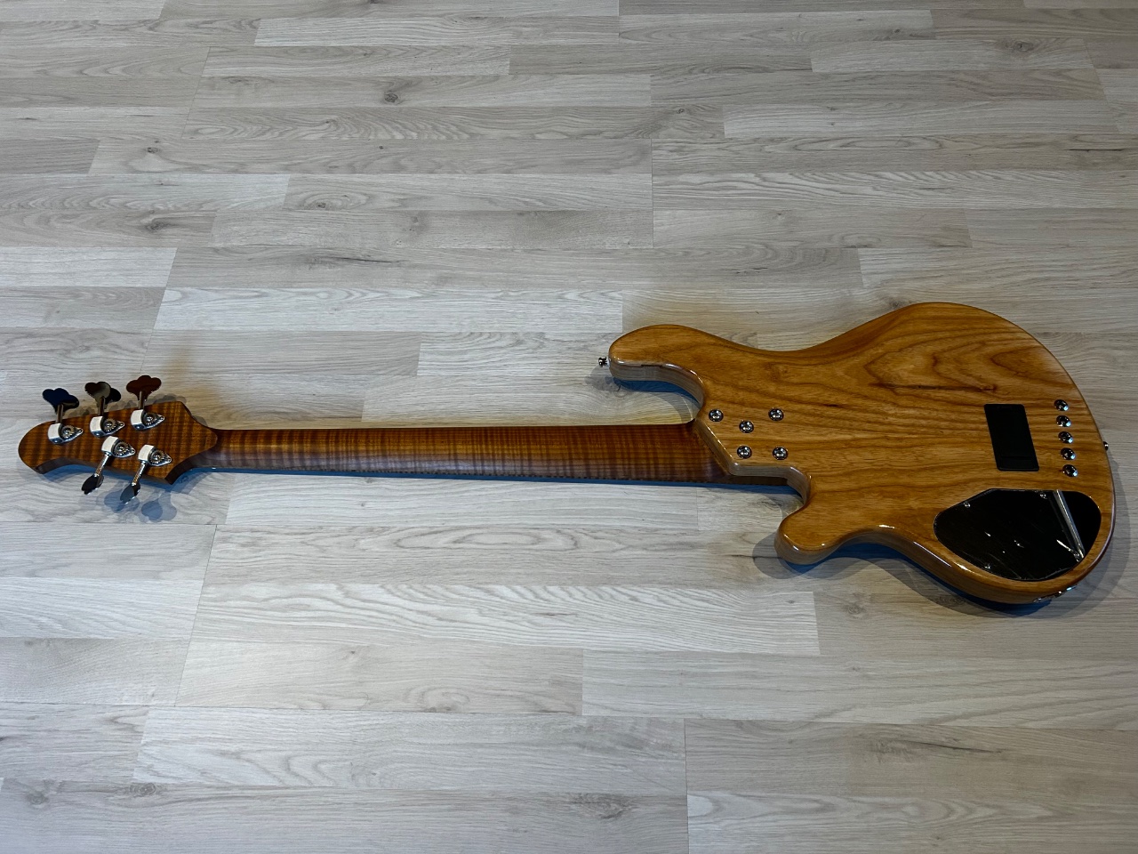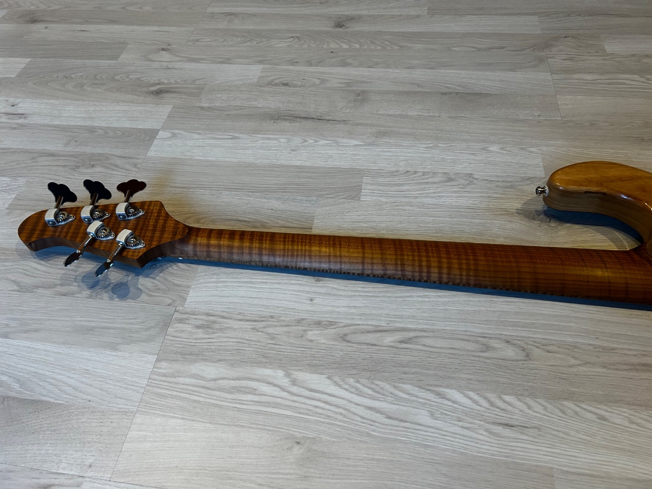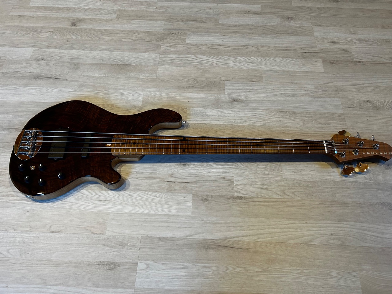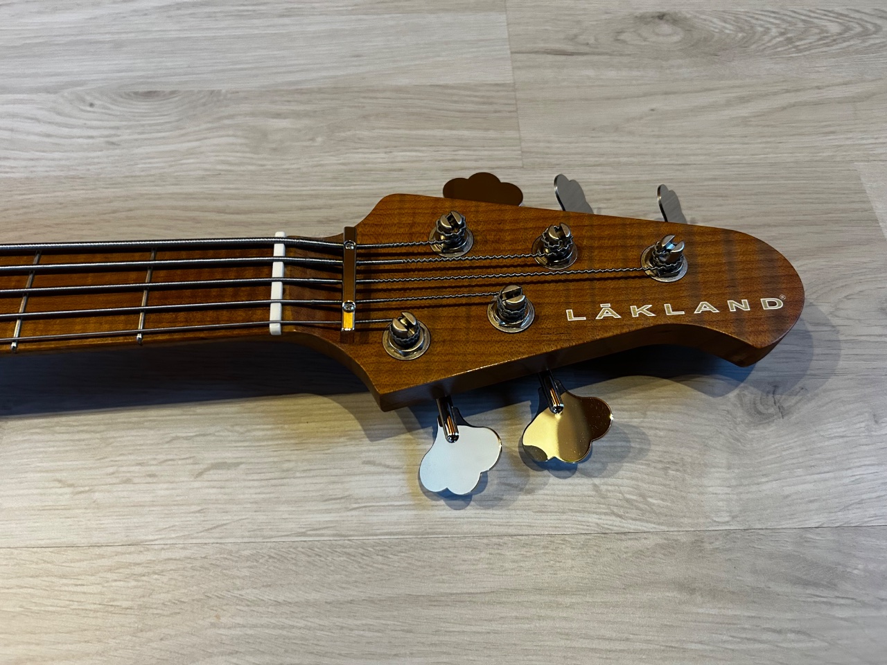 Zum Verkauf steht mein USA Lakland 55-94 Deluxe mit einer sehr schönen Claro Walnut Decke und einem roasted flame maple Hals.