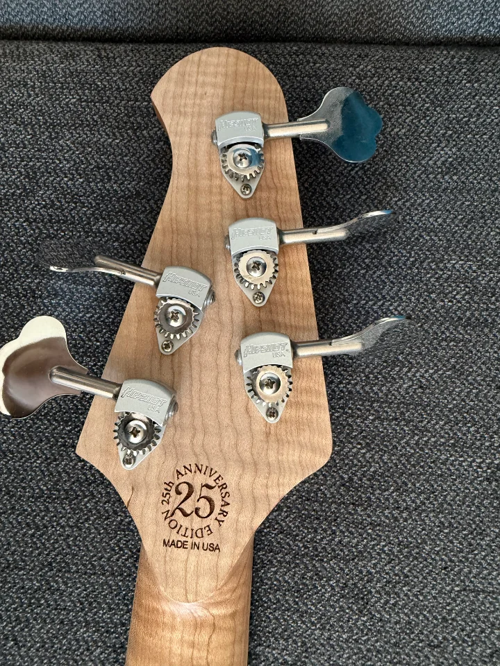 Lakland aus Chicago hat seit der Einführung seiner Flaggschiff-Modelle Mitte der 1990er Jahre den Ruf erworben, außergewöhnliche Klangqualität, Spielbarkeit und Verarbeitungsqualität zu bieten. Das 55-94 war Laklands erster 5-Saiter – und setzte den Standard dafür, was ein Boutique-5-Saiter sein sollte. Das 25th Anniversary Model ist ein limitiertes Sondermodell zum Markenjubiläum mit besonders sorgfältig ausgewählten Hölzern und Sonder-Appointments gegenüber dem Standardmodell.