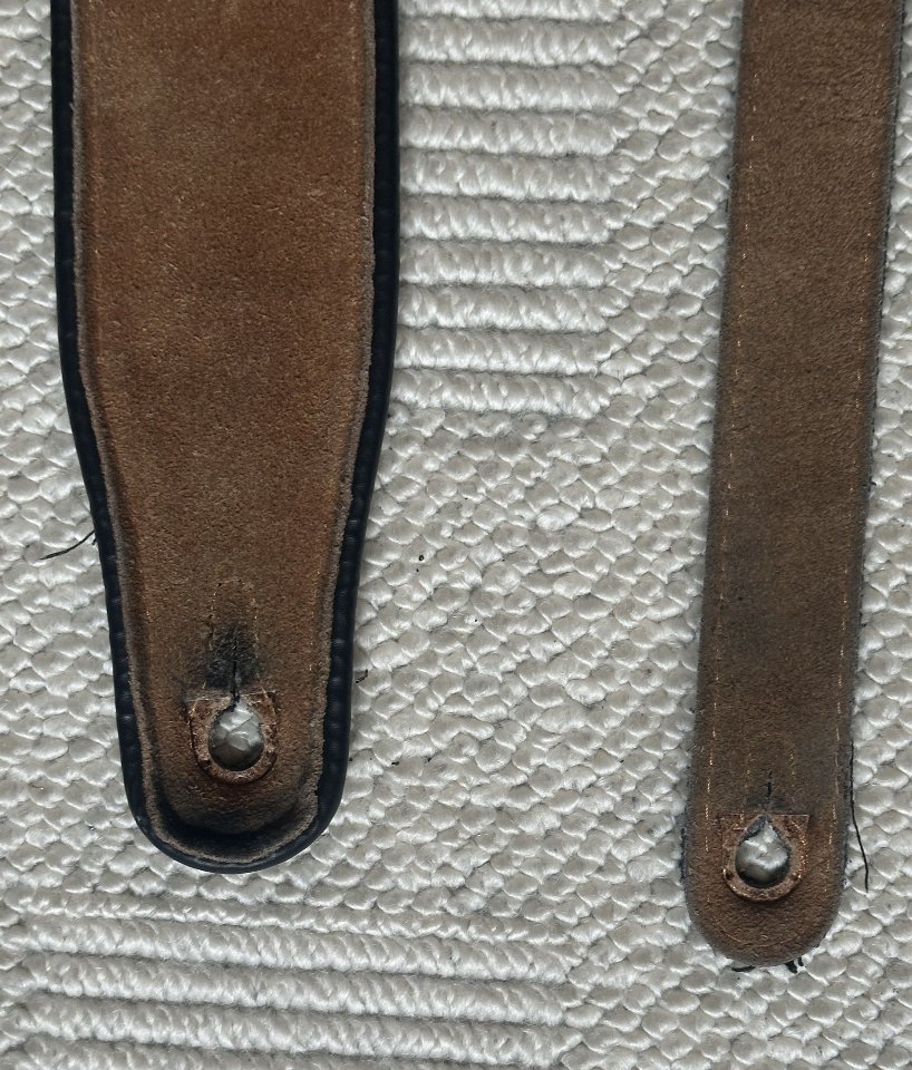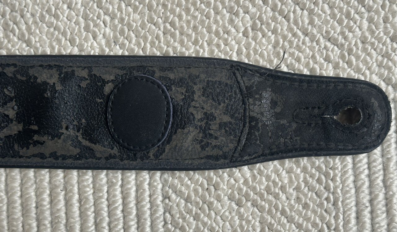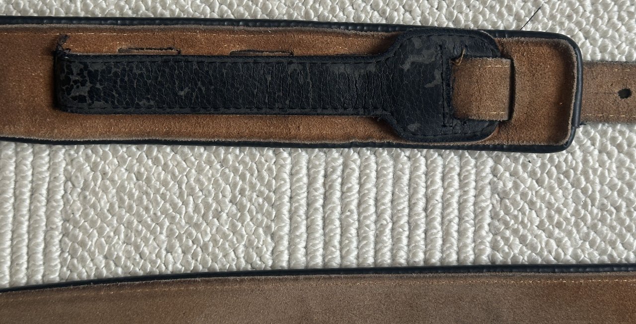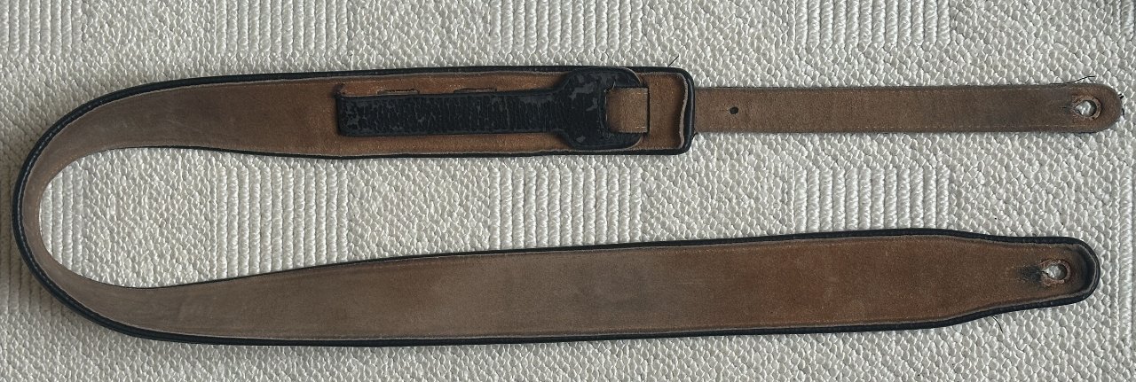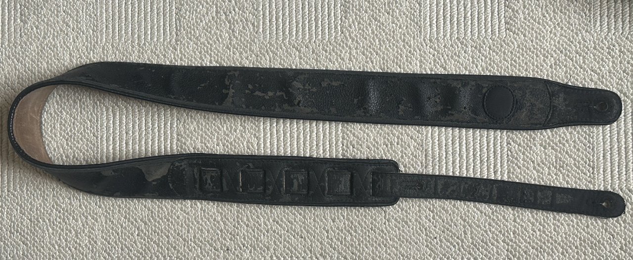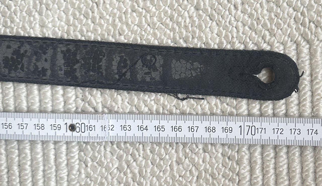 Biete einen Gitarren- & Bass-Gurt an, der auf der Obersite schon abgerockt aussieht, da sich das schwarze Kunstleder löst, die Unterseite und die Nähte sind noch in sehr gutem Zustand, so dass der Gurt noch lange benutzt werden kann, wenn einem die Optik nicht so wichtig ist.