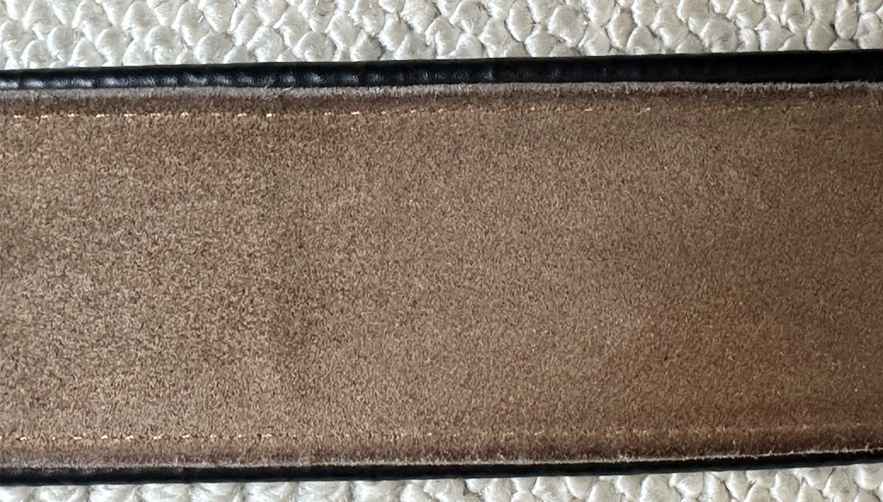 die Unterseite ist aus hellem echtem Wildleder, das noch gut erhalten ist,