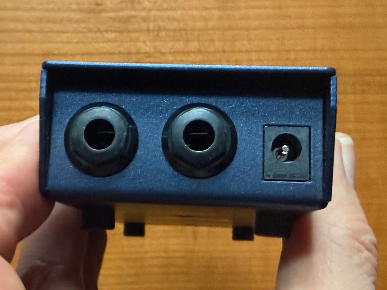 - Anschlüsse: Eingang (6,3 mm Klinke) - Ausgang (6,3 mm Klinke) - Netzteilanschluss (Koaxialbuchse 5.5 x 2.1 mm - Minuspol Innen)