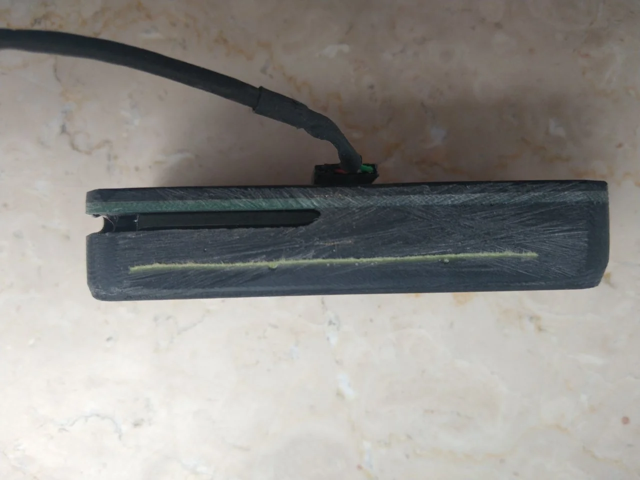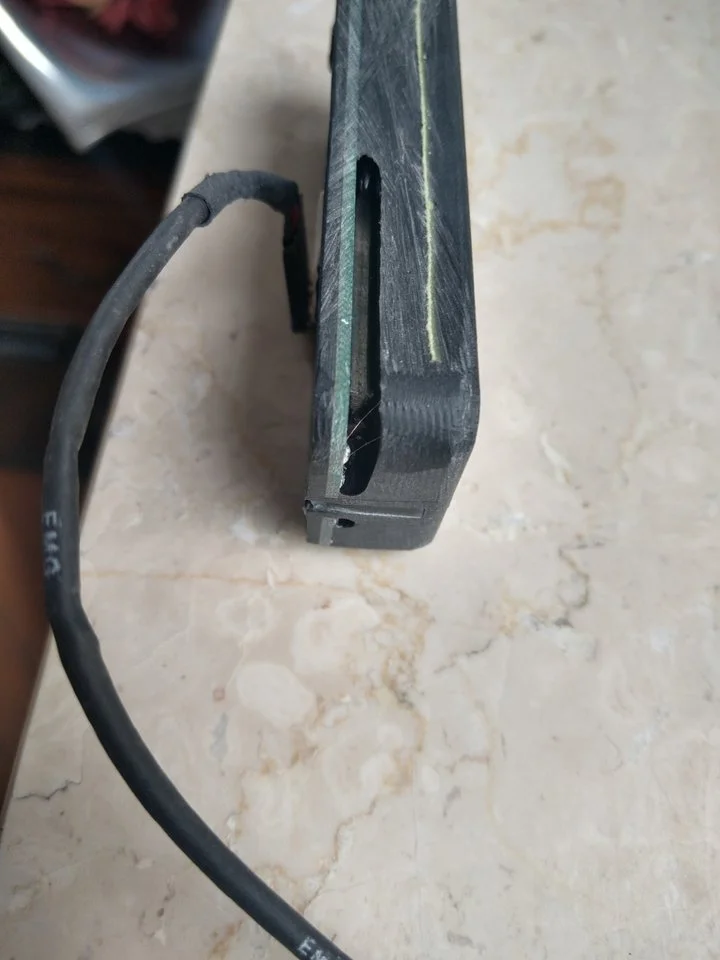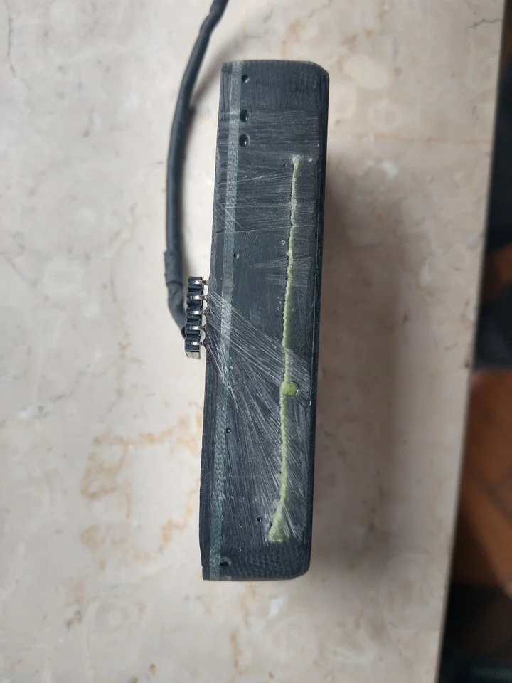 Wer mag kann einen defekten EMG-HZ-Thunderbird-Pickup geschenkt dazubekommen. Den habe ich neu beim T gekauft um ihm ein Chromcover zu verpassen (hier mein Fred dazu: Thunderbird verchromen), leider bin ich beim abschleifen des Kunststoffcovers in einen Hohlraum durchgebrochen, wo kein Harz hingekommen war.