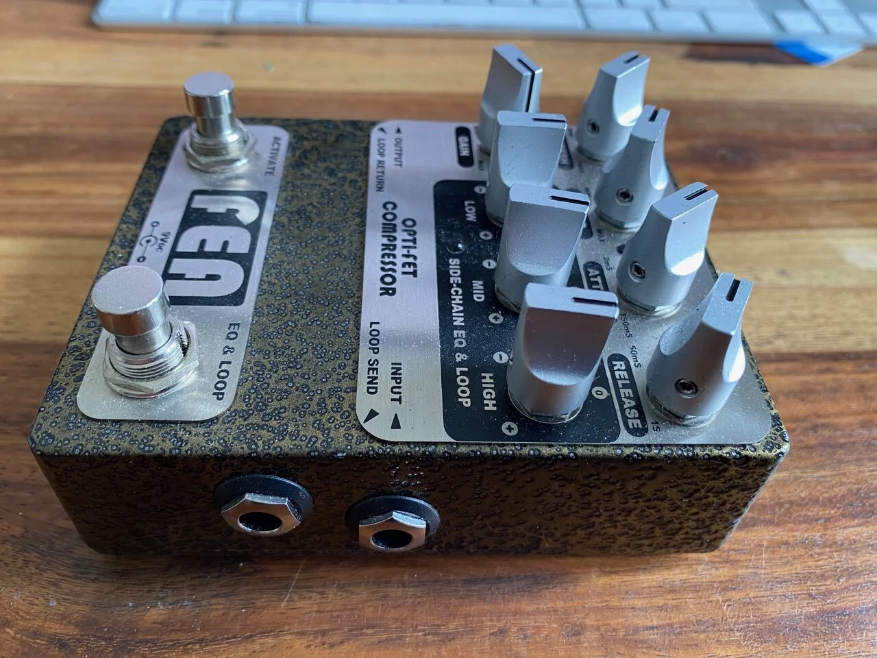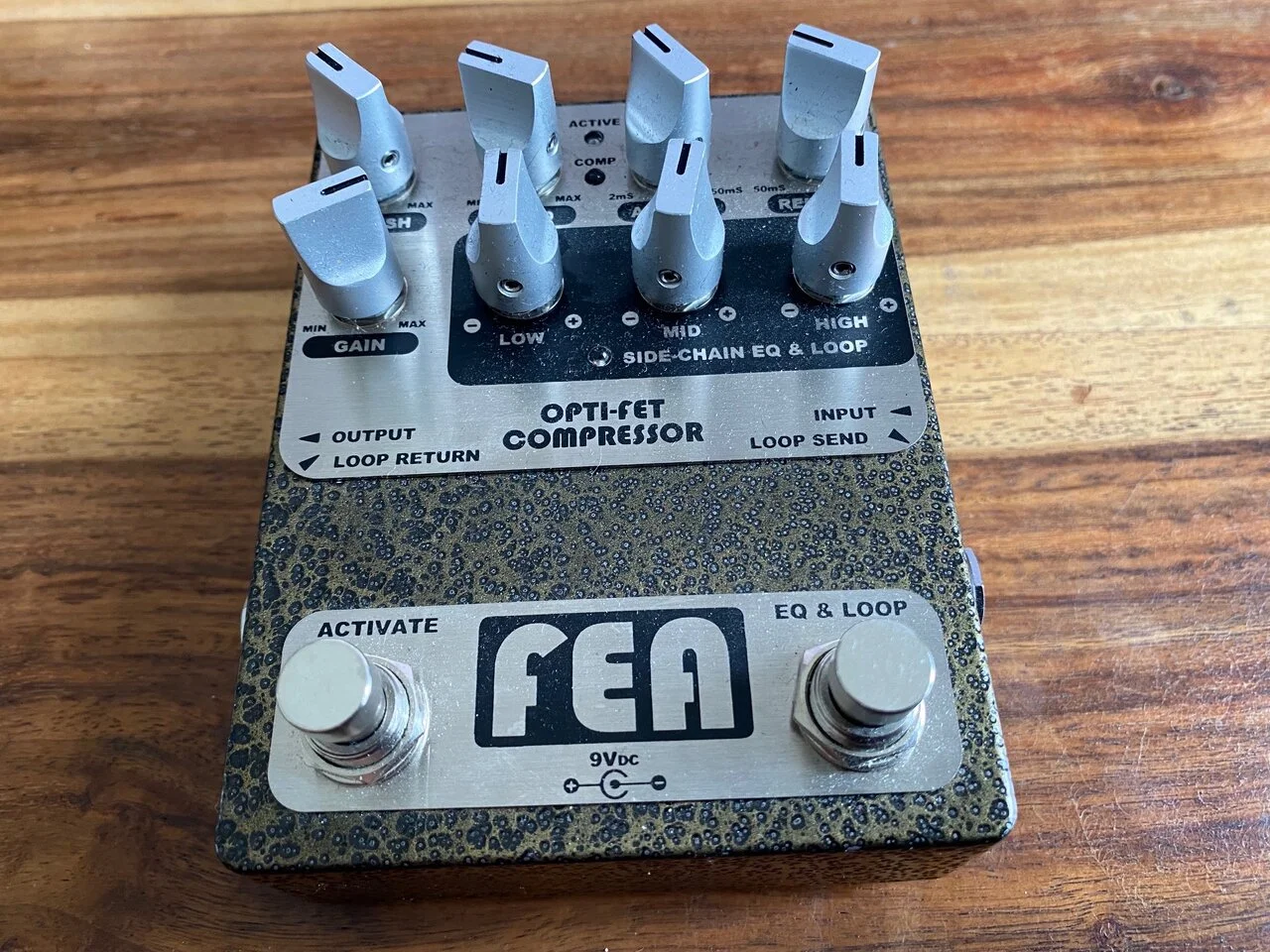 - EQUALIZER foot switch enables the three band equalizer controls for the side-chain control circuit. The three band EQ only affects the amplitude of frequencies of the signal in the side-chain control circuit to modify threshold sensitivity by frequency band.