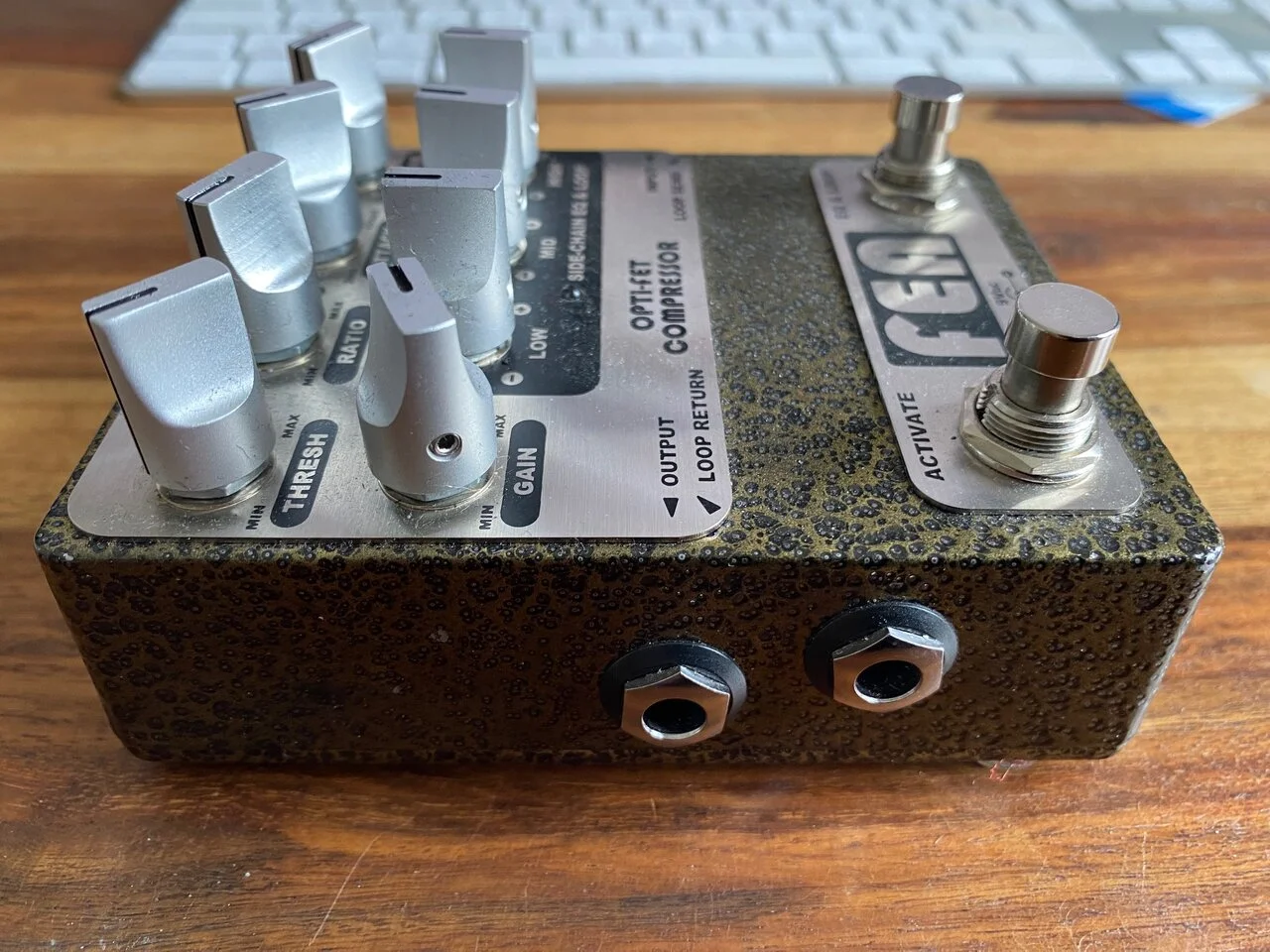 - ACTIVATE foot switch places the compressor unit in the signal chain or in Direct Bypass mode. In Direct Bypass mode the signal at the input is directly connected to the output and does not pass through any electronics.