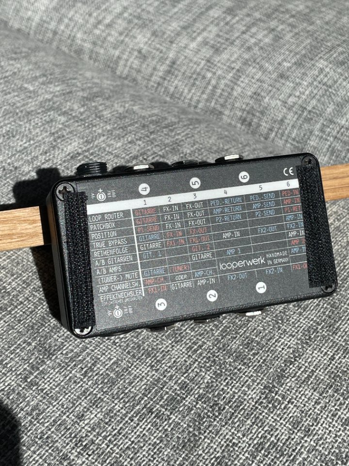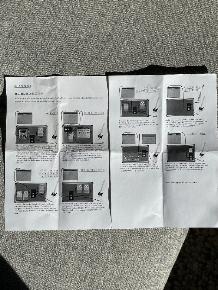 Kaum genutzter Multirouter von Looperwerk. Ermöglicht diverse Schaltungen zwischen Instrumenten, Effektwegen und Verstärkern. Solide Bauweise. Kommt mit abgebildeter Bedienungsanleitung.