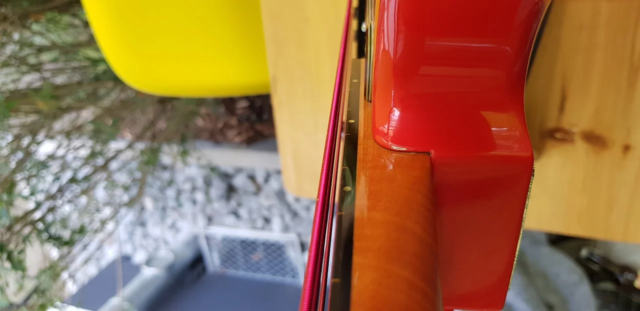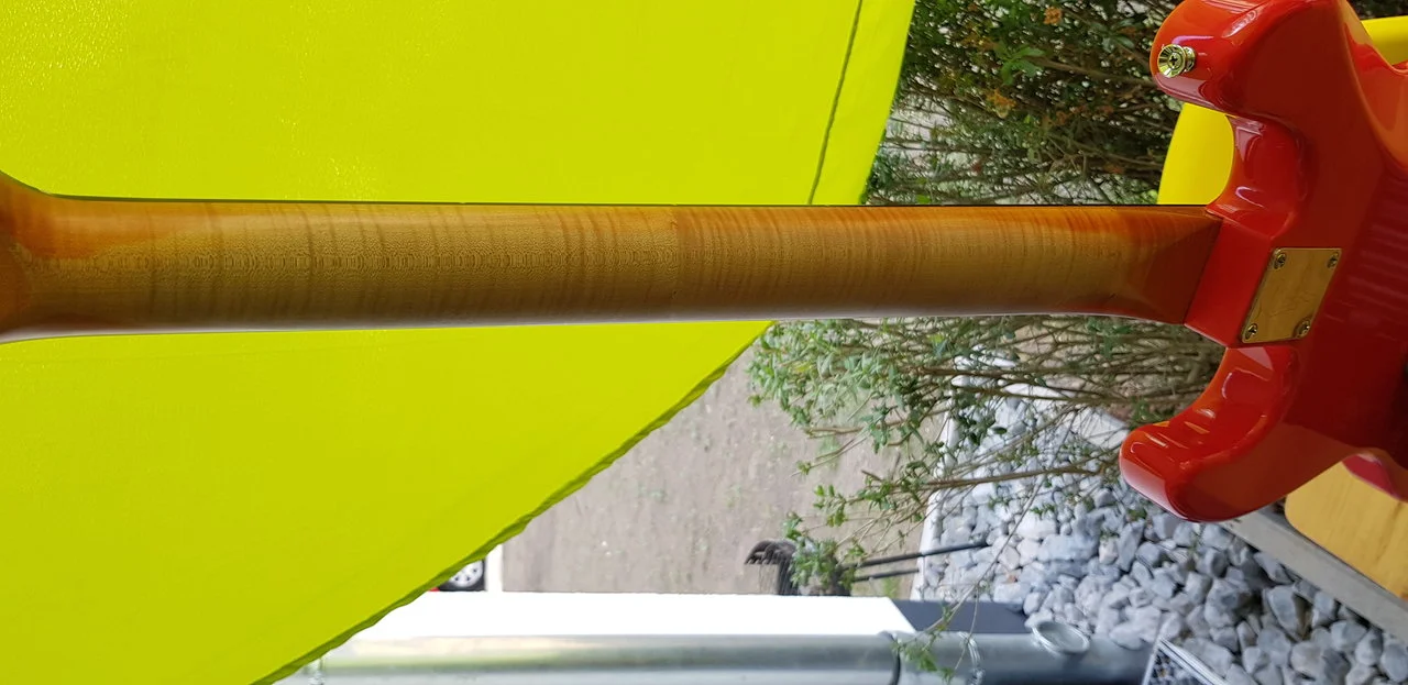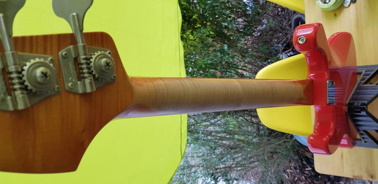 Der Hals wurde mit Stahlwolle abgeschliffen und mit Teak-Öl versiegelt.