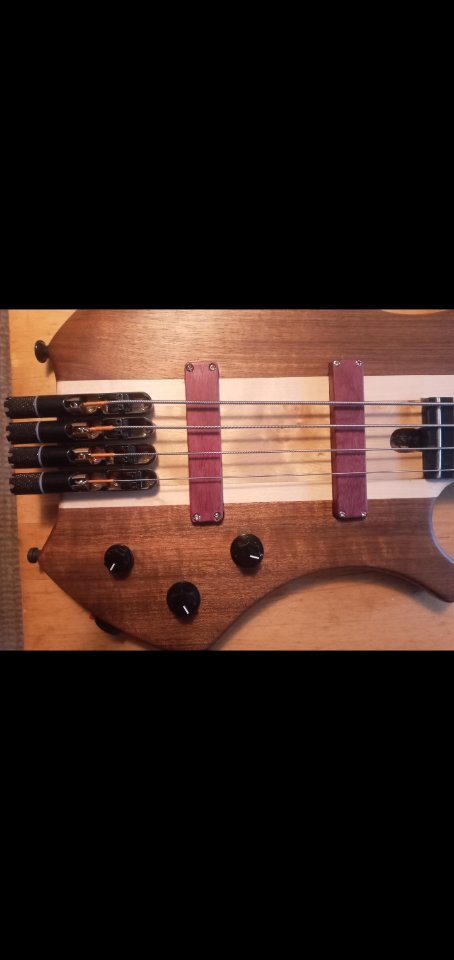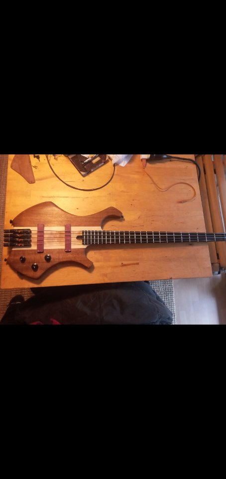 Meister Krempel hatte alle Holzarbeiten an diesem Bass fertiggestellt. Superb. Bei Upgrade Basses sind dann Hardware, Holzkappen und Elektronik dazu gekommen.