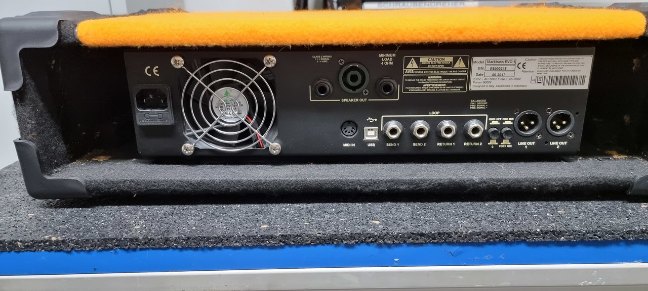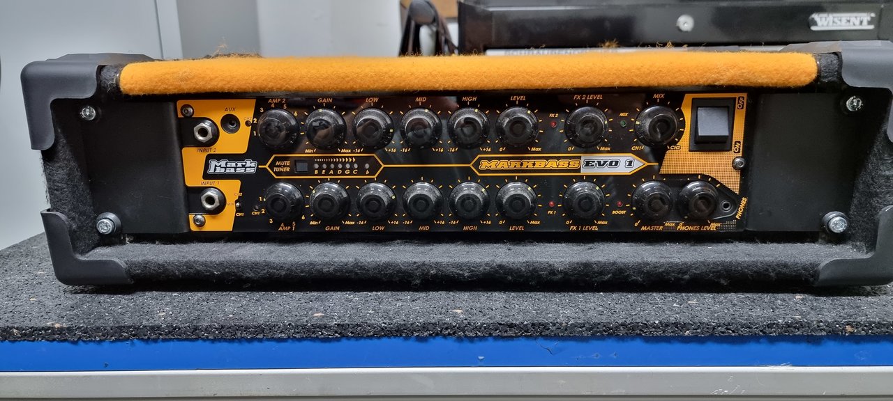 Dem Amp wurde ein Case spendiert in den passenden Farben von MarkBass.