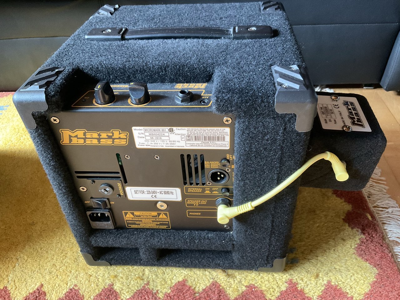 Hallo Leute, ich verkaufe meinen Wohnzimmeramp Micromark 801 mit dem feinen 50W Hochtöner Made in Italy (um Klassen besser als der spätere 20W Made in Indonesia) mit Original Markbass Hülle für den 801er sowie Patchkabel zum Anschluss des Tweeters. Alles in super Zustand. Tweeter ist von Markbass nicht mehr lieferbar. Eigentlich unverständlich, da der Combo nur so sein volles Klangspektrum entfaltet und wirklich sahnemässig klingt. NP 452€. Jetzt 290€ + versichertem Versand.