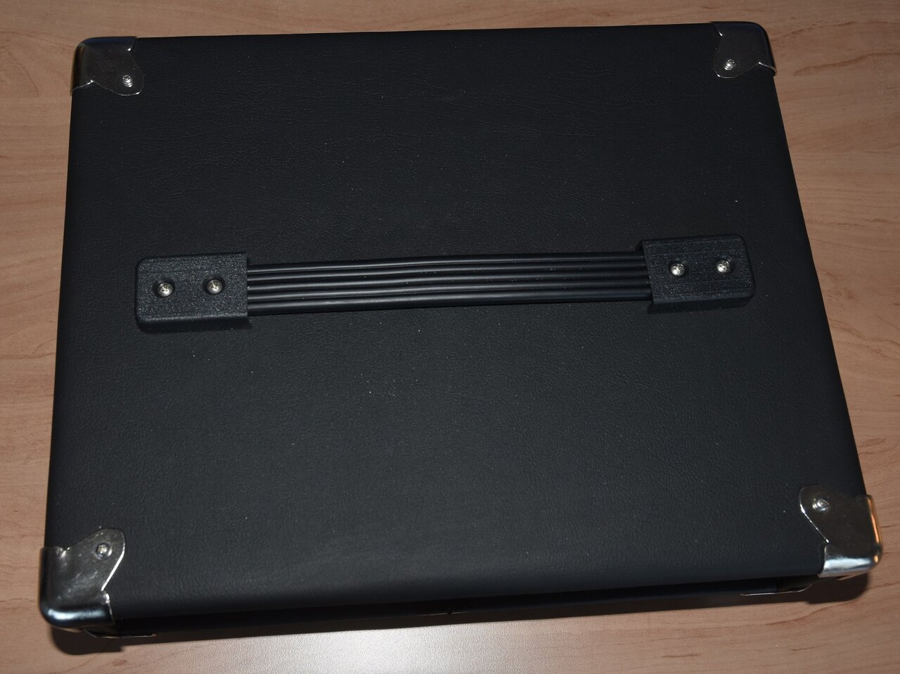 Er sitzt mit gekürzten original Rackohren in einem passend angefertigten Headshell (Sperrholz, geleimt und gedübelt, mit schwarzem Kunstleder bezogen, Beschläge von Adam Hall). Das Ganze ist 36x28x13cm groß.
