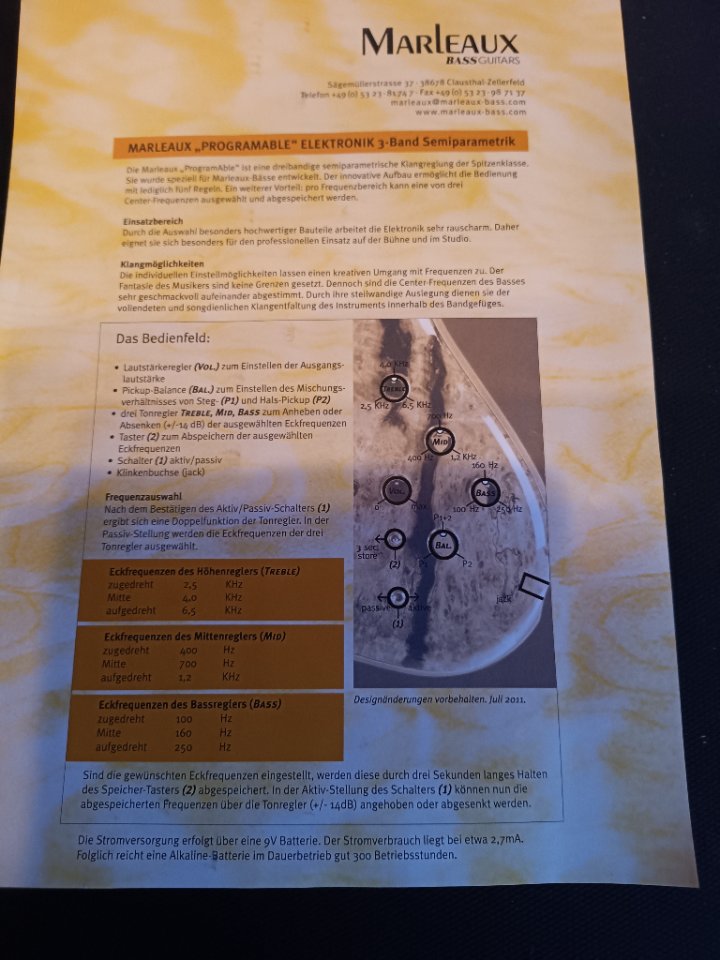 Wiegt nur knapp über drei Kilo und hat eine Marleaux,,programable,, Elektronik 3-Band Semiparametik.