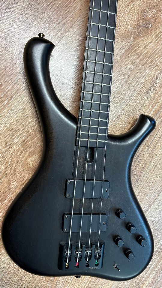 Marleaux BC3 Elektronik – 3‑Band aktiv/passiv (High‑End) Original Marleaux BC3 3‑Band‑Elektronik in aktiv/passiver Ausführung. Hochwertige Bauteile, speziell für Marleaux‑Bässe entwickelt. Linearer Lautstärkeregler (Vol), Pickup‑Balance (Bal) sowie aktive Klangregelung für Bass (40 Hz ±14 d, Mitten (600 Hz ±12 dB, Bandfilter Q≈1) und Höhen (8 kHz ±14 d. Aktiv/Passiv‑Schalter mit vollständigem Bypass der Klangregelung im Passivbetrieb. Präzise abgestimmte Filter (6 dB/Okt.) sorgen für eine definierte, musikalische Klangformung. Betrieb über 9 V‑Batterie, Stromverbrauch ca. 2,4 mA, Batterielaufzeit bis ca. 350 Std. Professionelle Studio‑ und Bühnenqualität.