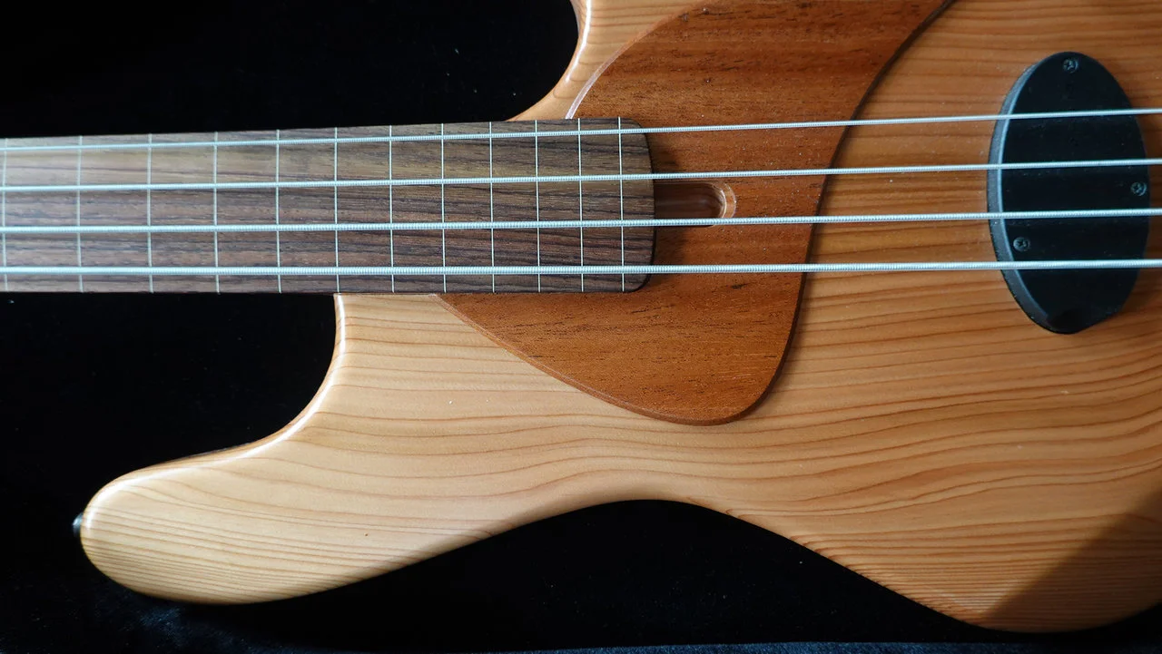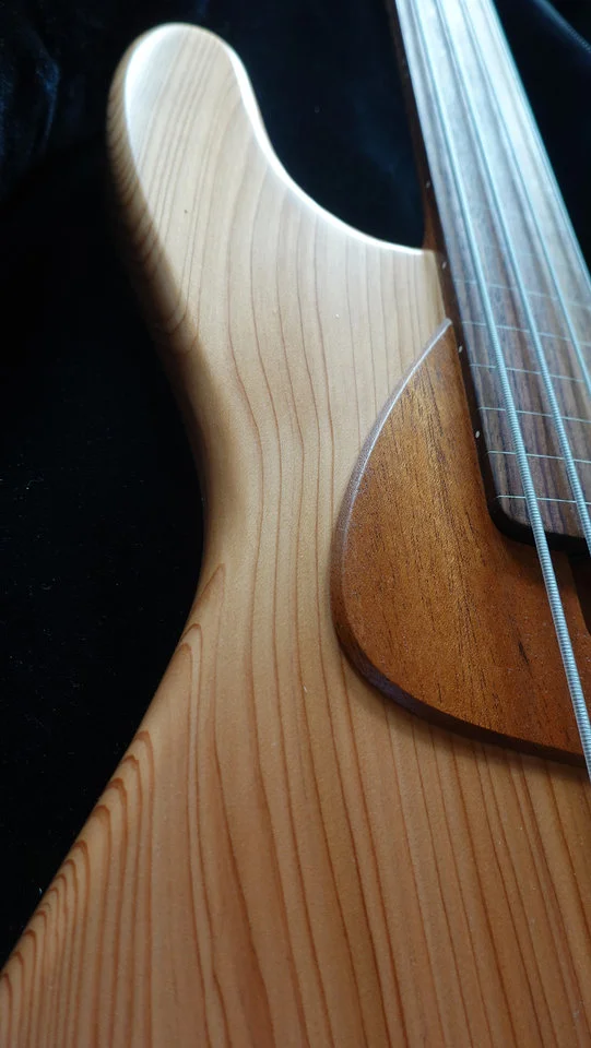 Wie in der aktuellen "Gitarre und Bass" vom August beschrieben, hat Marleaux zum 30 + 1 Firmenjubiläum eine neue Serie des Votan-Basses aufgelegt: der Nude fretless mit Mahagoni-Hals, ultraleichtem Thuja-Korpus und einer einmaligen, an Jugendstil grenzenden Schlagplatte aus Mahagoni.