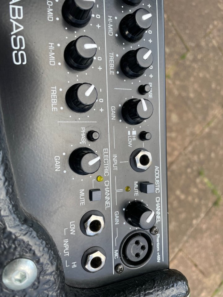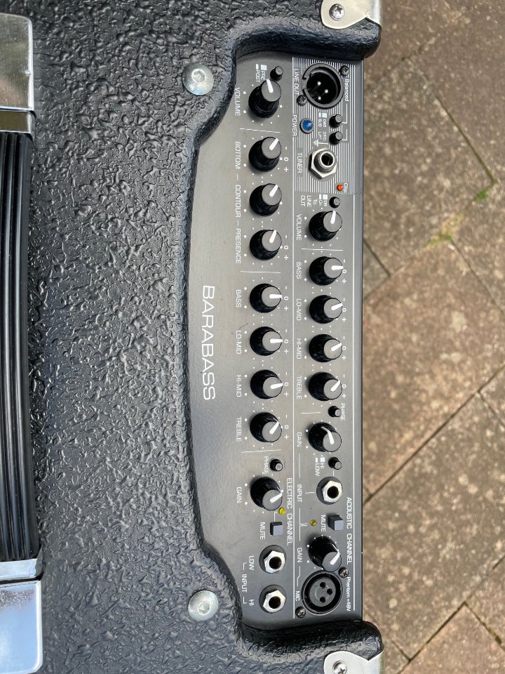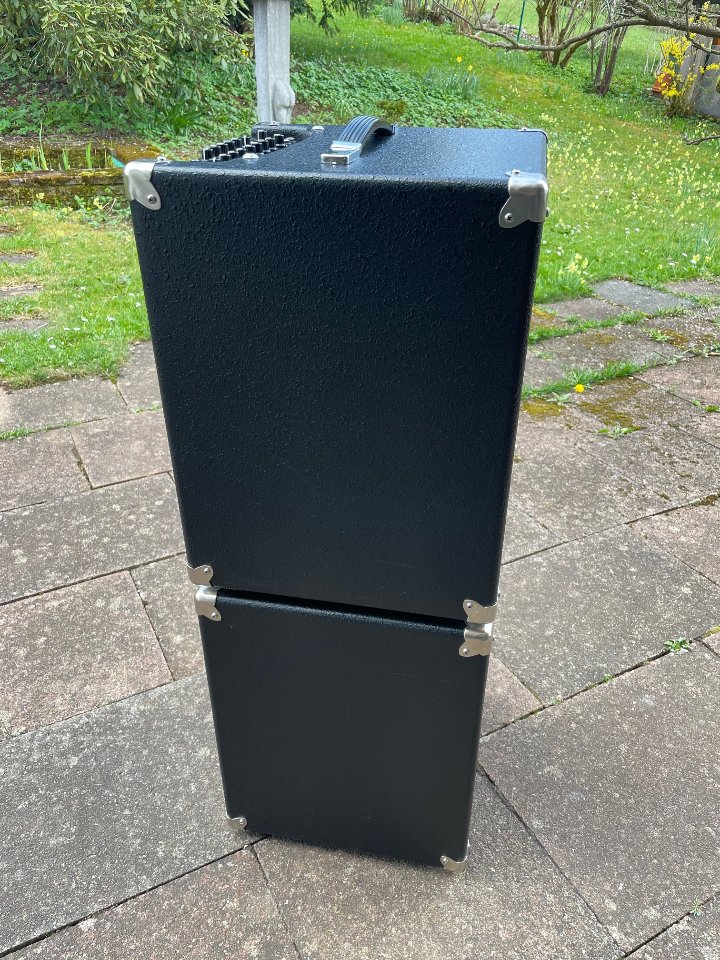 Biete diese sehr schöne Kombi aus Combo und Box. Der Sound ist über jeden Zweifel erhaben. Er ist zweikanalig, ein Kanal für Kontrabass mit Mikrofon (sogar mit Phantomspeisung) und Piezo Eingang. der andere für E-Bass. Kein nervender Lüfter. Sowas gibt es kaum zu kaufen.