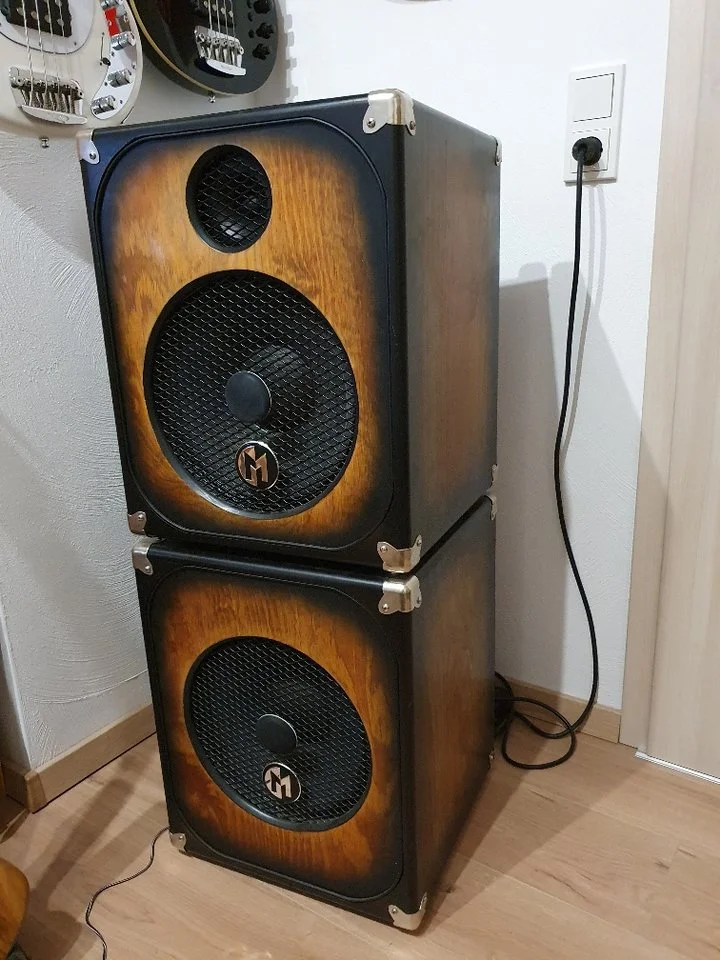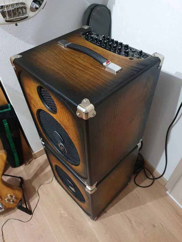 Ich habe lange mit mir gerungen und setze den Top-Combo von Adrian Maruszczyk nun doch mal in die Kleinanzeigen. Ich finde den Combo spitze, habe aber noch den Maruszczyk Bass Tank mit der 1x12" Box, was im Grunde genau das gleiche ist, nur Amp und Box getrennt. Das lässt sich mit einem kaputten Rücken etwas einfacher tragen. Das Set steht so nur noch bei mir im heimischen Hobbyraum (natürlich klimatisiert) und für zu Hause reicht auch ein kleineres Besteck. Es fällt mir definitiv extrem schwer das hier anzubieten, aber ich habe einfach zu viel Equipment. Der Combo wird mit passender Zusatzbox und den beiden! Covern verkauft. Er befindet sich in einem Top-Zustand, hat nur minimale Gebrauchsspuren.