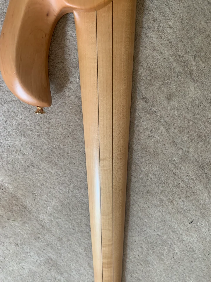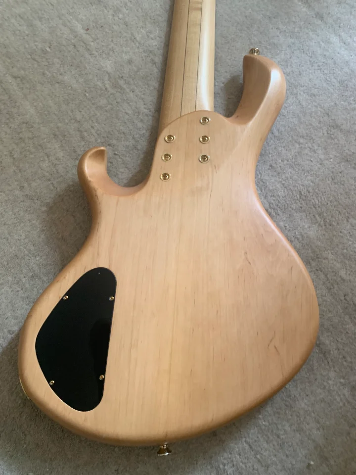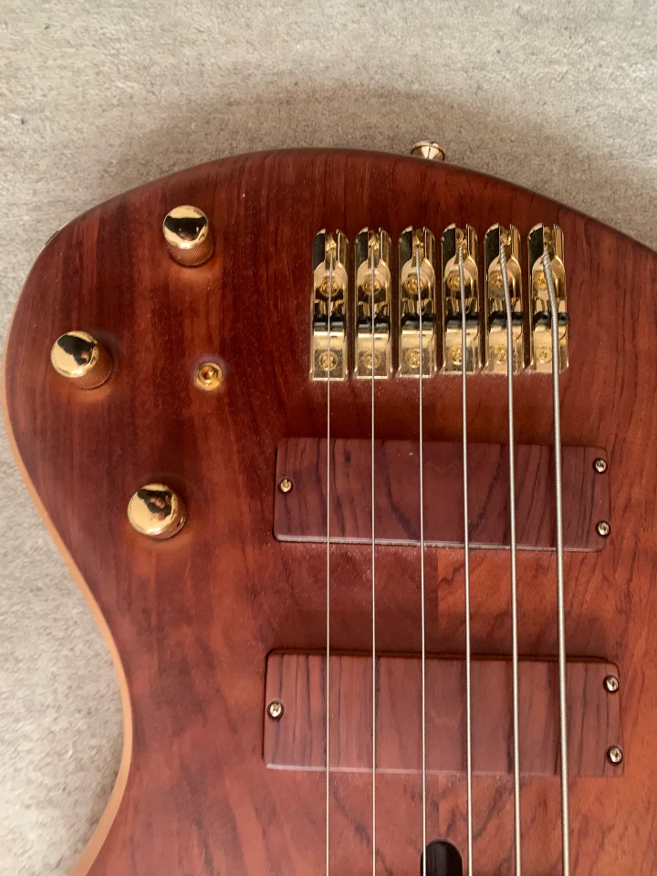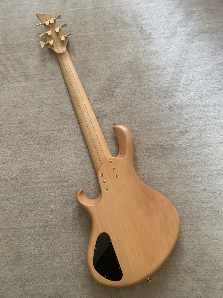 Ich verkaufe einen Fretlessbass aus dem Custom-Shop von Adrian Maruszczyk. Eine passive Klangregelung sorgt für eine unverfälschten Fretless-Sound und lässt den Bass schön schnurren. Die extra angefertigten Bassculture Humbucker haben ein Holzcover. Ein schmales Griffbrett und eine komfortable Form machen ihn leicht bespielbar. Der Bass wiegt nur 3,95 kg.