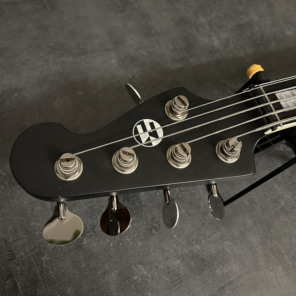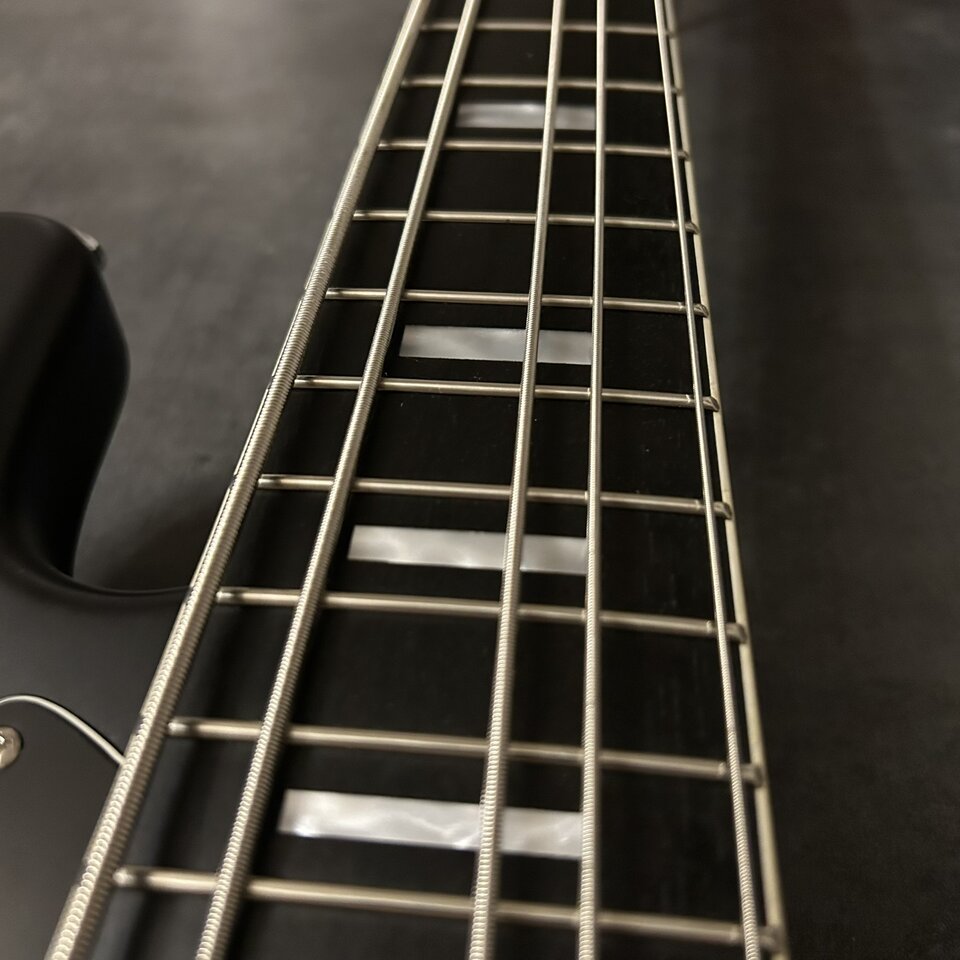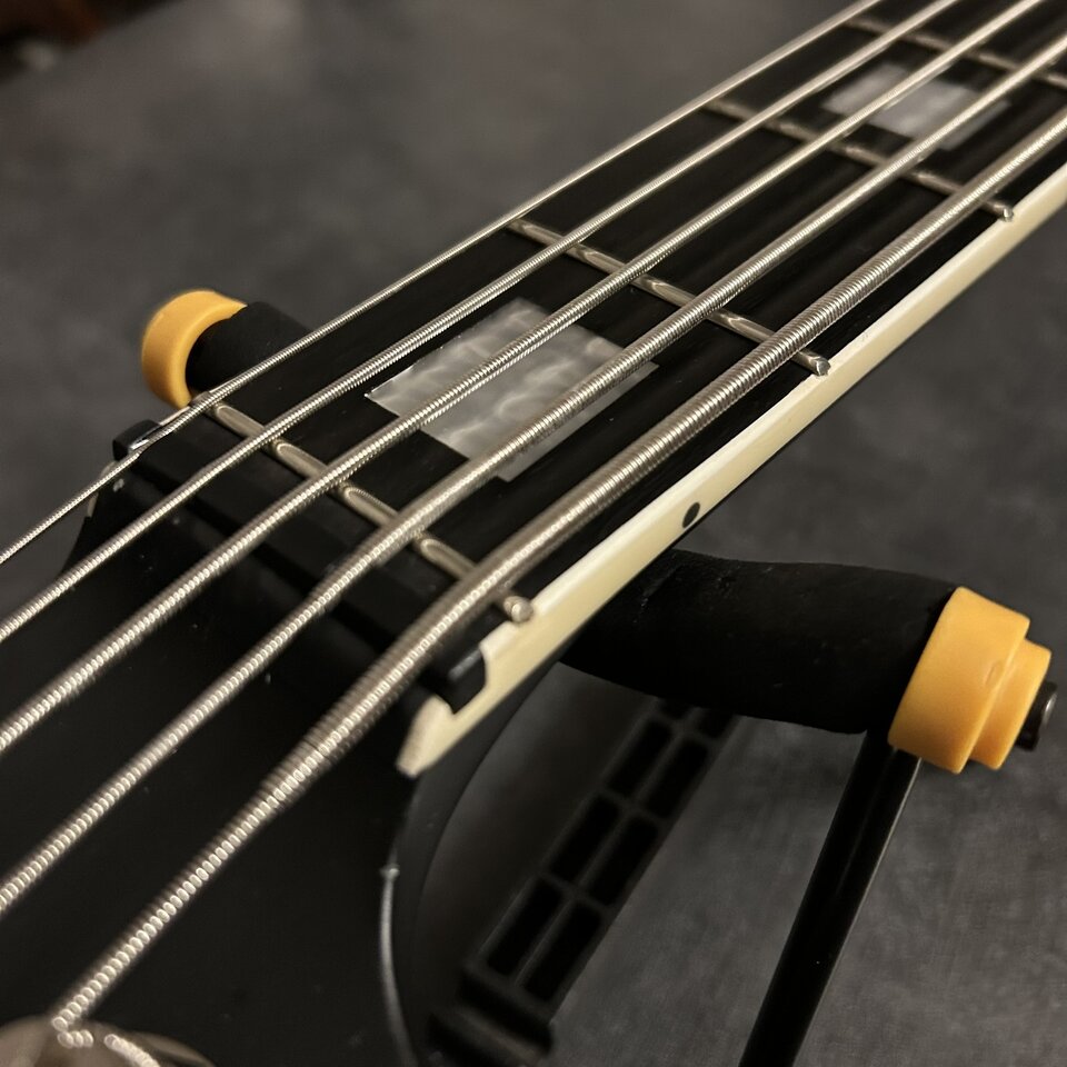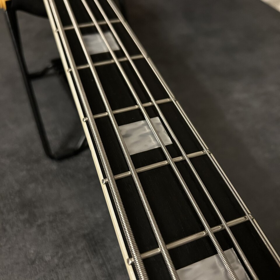 The bass was made in 2020 and is in perfect condition; everything works perfectly: the frets, the neck (reinforced with carbon inserts on both sides of the truss rod), and the electronics. The visuals are also good, with a dent near the bridge and some scratches from the strap near the mounting screws on the back to be mentioned.