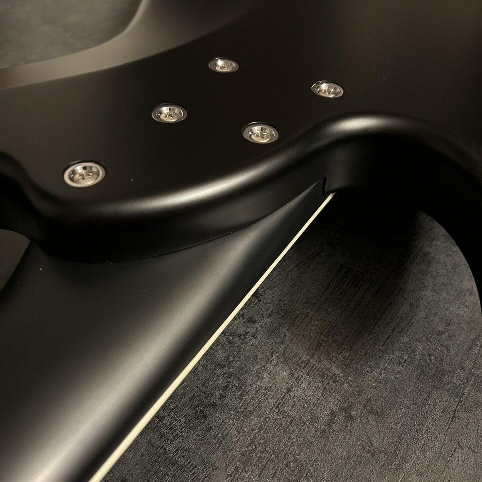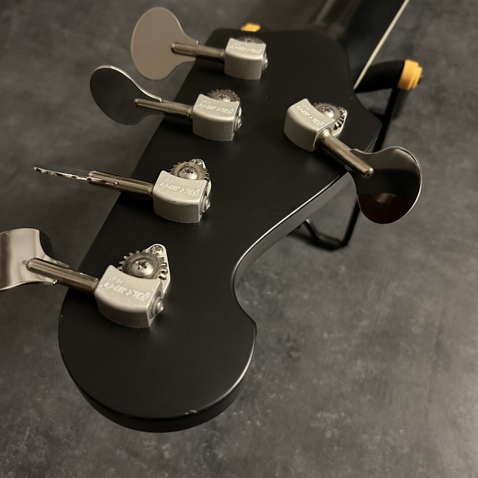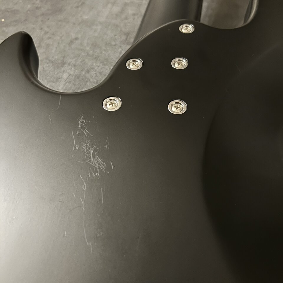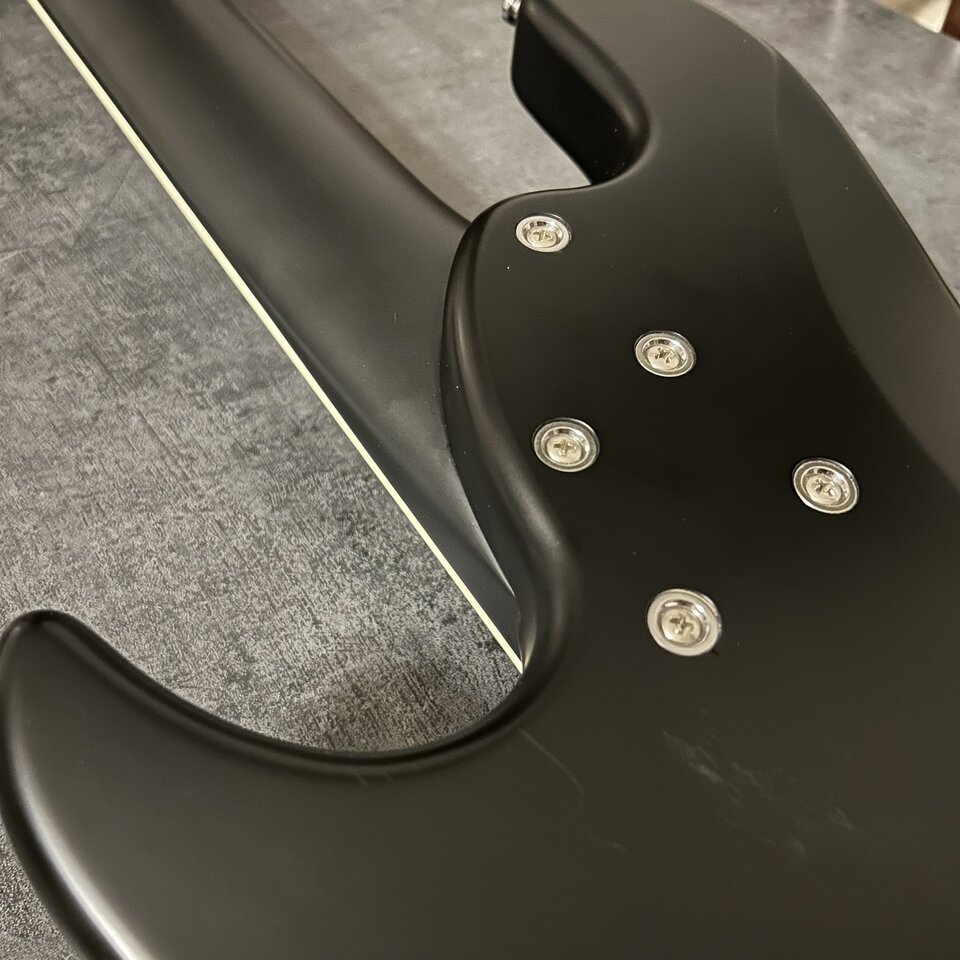 The bass was made in 2020 and is in perfect condition; everything works perfectly: the frets, the neck (reinforced with carbon inserts on both sides of the truss rod), and the electronics. The visuals are also good, with a dent near the bridge and some scratches from the strap near the mounting screws on the back to be mentioned.
