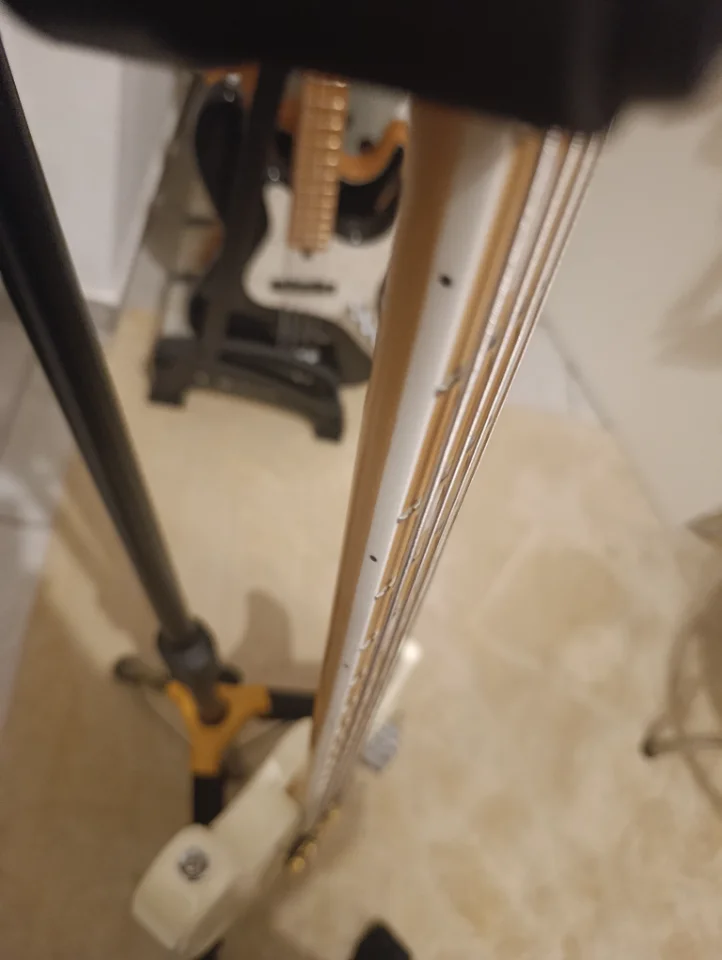Ich hatte zeitweise andere Saiten Niederhalter angebracht und es sind noch wie auf den Bildern zu sehen alte kleine Löcher in der Kopfplatte.