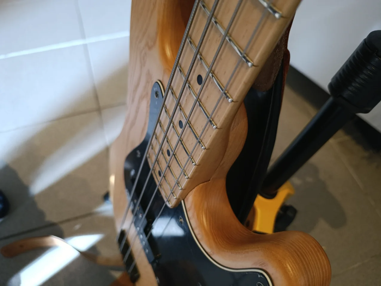 Der Bass hat eine sehr flache Saitenlage