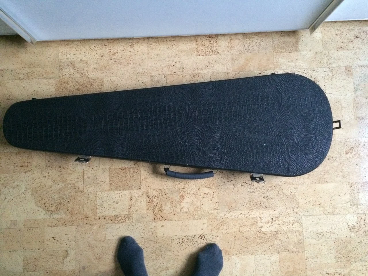 Es sind neue Elixier Saiten drauf. Einen passenden Koffer mit Stabilem, aber selbstgebautem Griff, gebe ich dazu.