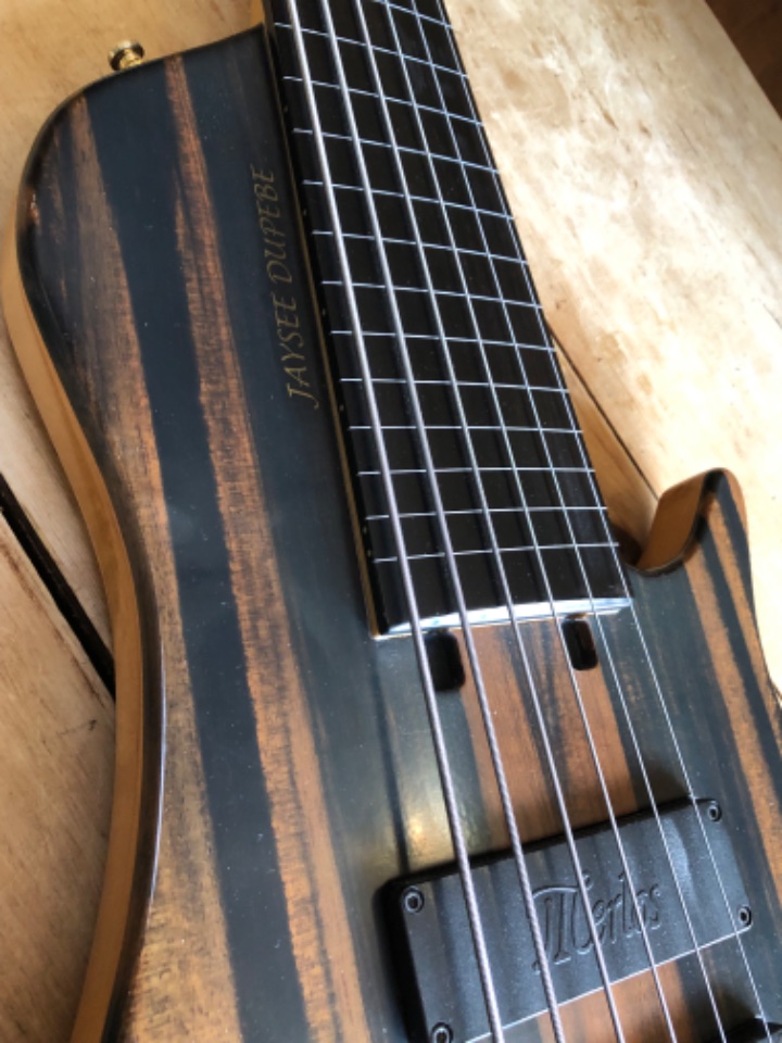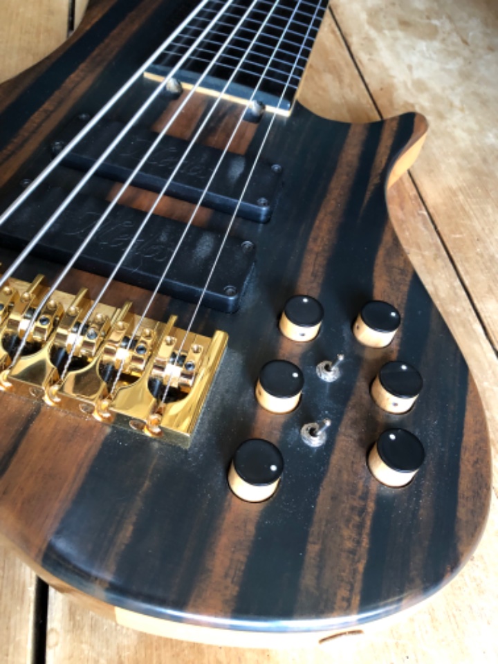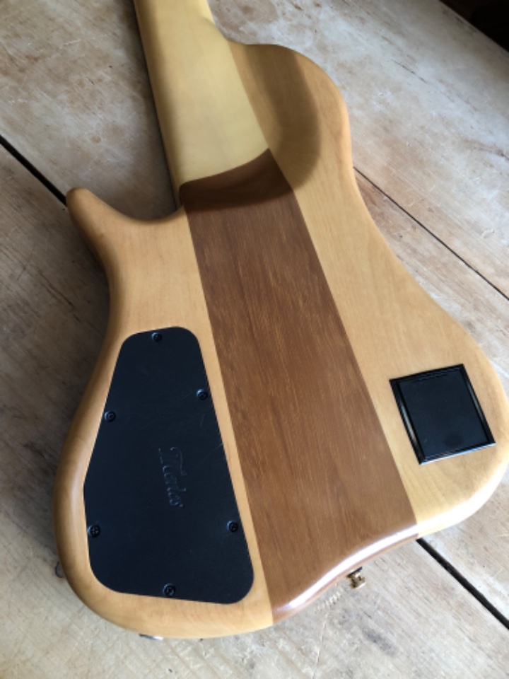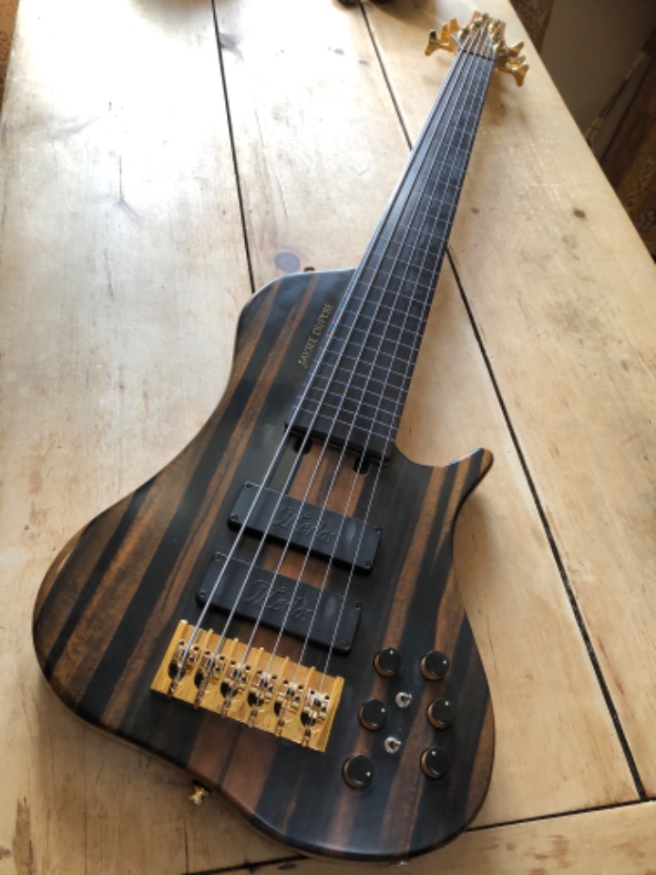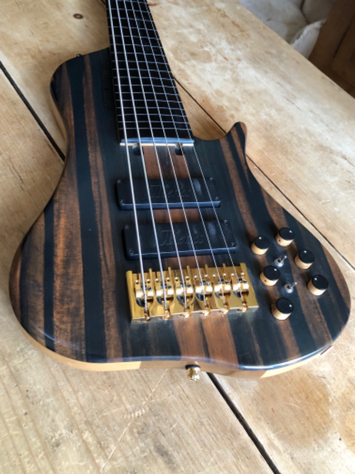 Hallo allerseits, biete hier meinen sehr hochwertigen Merlos Singlecut Fretless 6 String Bass an. Spiele eigentlich nur noch 5 Saiter und daher biete ich diesen tollen Bass hier an. Relativ leich mit ca. 4.4 Kg für einen 6 String Bass, sehr leicht bespielbar, sehr tiefe Saitenlage und durch den auf der Rückseite abgeflachten Hals kommt man auch easy bis in die höchsten Lagen. Der Bass hat Spielspuren