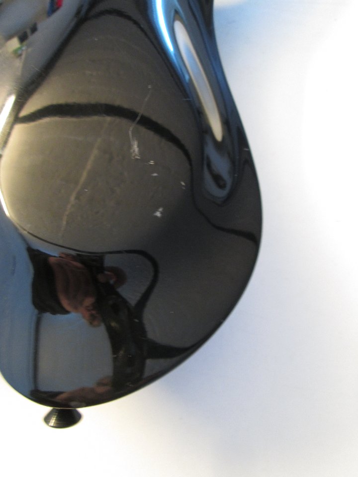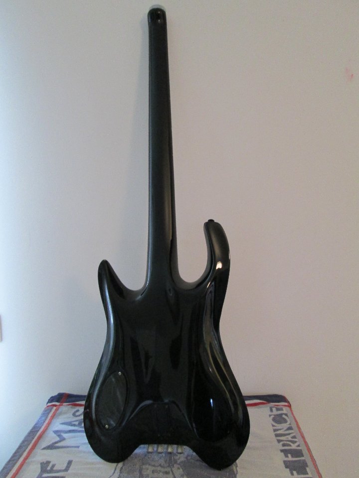 Dieser Bass ist komplett aus Kohlefaser (auch Carbon oder "graphite" genannt), nahtlos und hohl mit einem Gewicht von 2,9 kg.