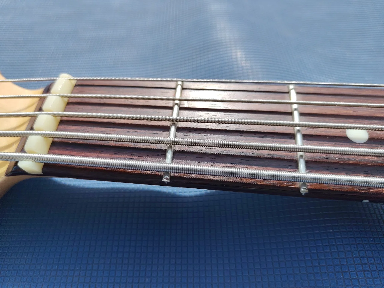 Ich habe kürzlich das Pickguard gewechselt von Shell Braun zu Weiß. Einen neuen Satz Saiten (Pyramid Low Bottom Five Lite NPS) habe ich aufgezogen. Der Sattel wurde gegen einen Knochensattel getauscht, der alte Sattel wird aber natürlich mitgeliefert. Ebenso wird das Original Pickguard und ein Original-MM-Koffer in einwandfreiem Zustand mitgeliefert.