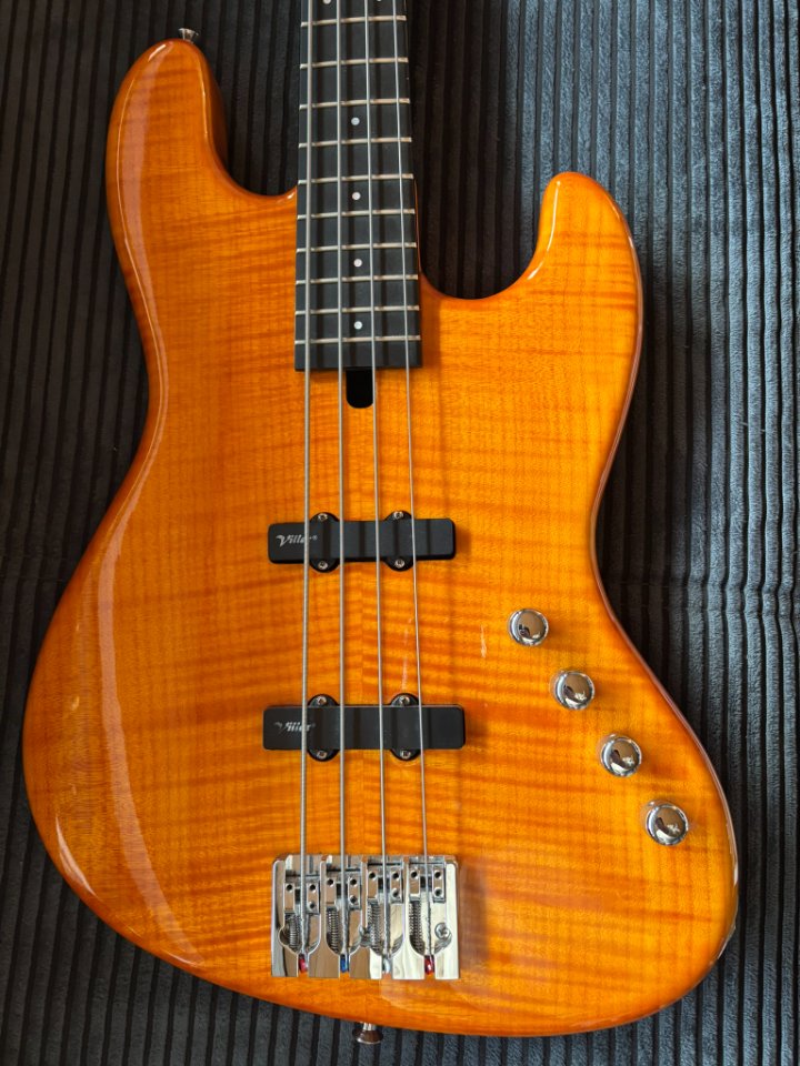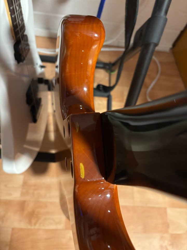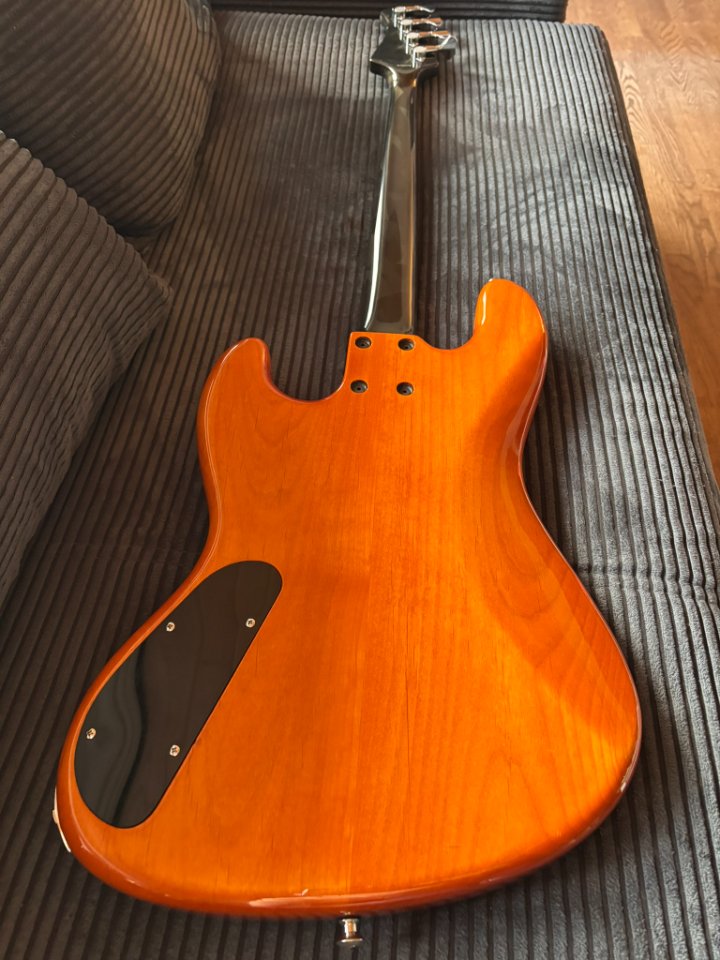 Der Bass befindet sich in gutem Gebrauchtzustand mit normalen Spielspuren. Technisch ist alles einwandfrei. Es gibt lediglich einen kleinen Fehler in der Lackierung am Halsübergang auf der Rückseite, dieser befindet sich unter dem Klarlack.