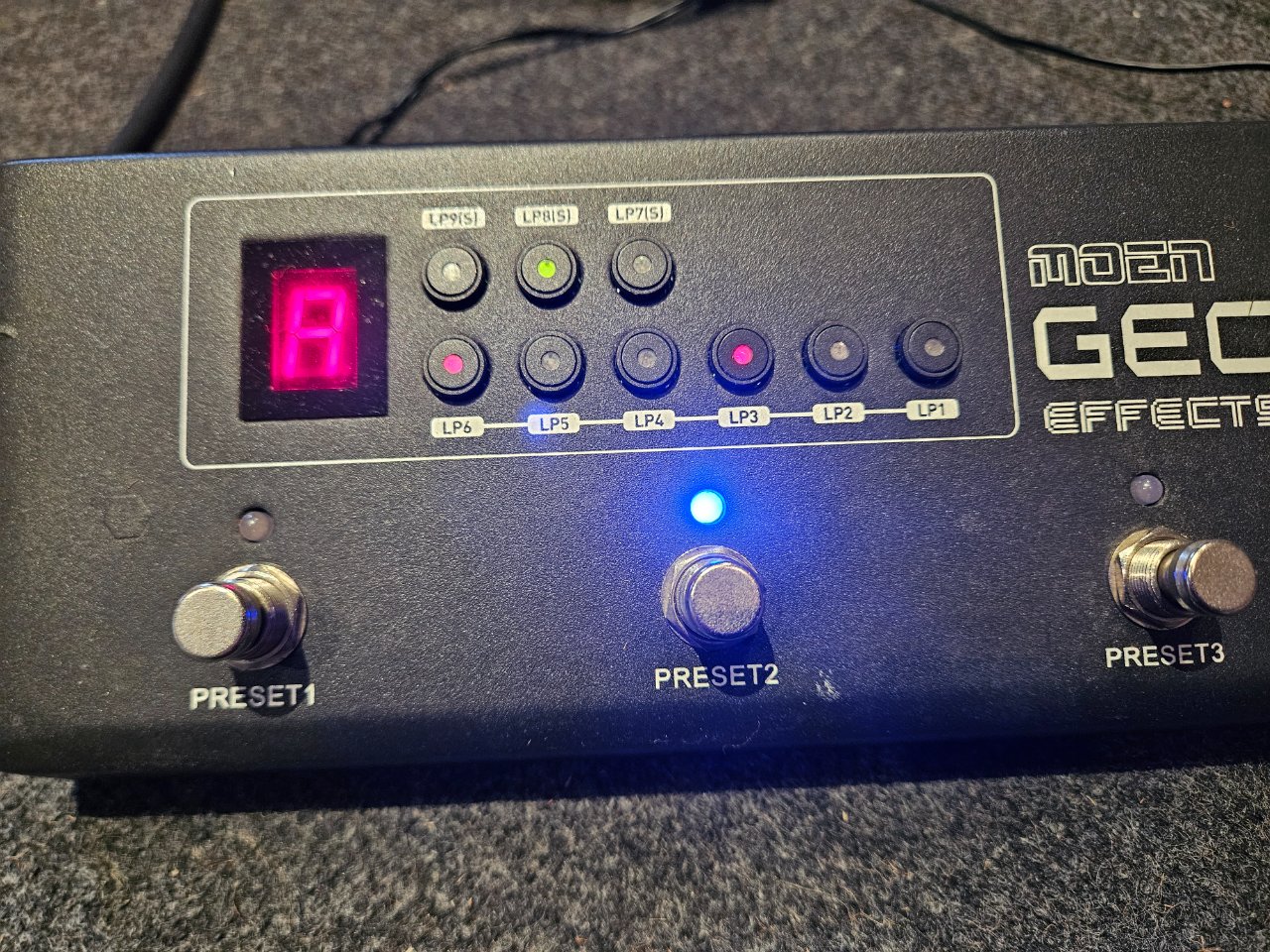 Biete einen Loopswitcher von Moen in sehr gutem Zustand zum Kauf an. Das GEC9 kann bis zu neuen Pedale vorprogrammiert schalten - bei großen (aber natürlich auch kleineren) Boards eine richtig g...e Sache.