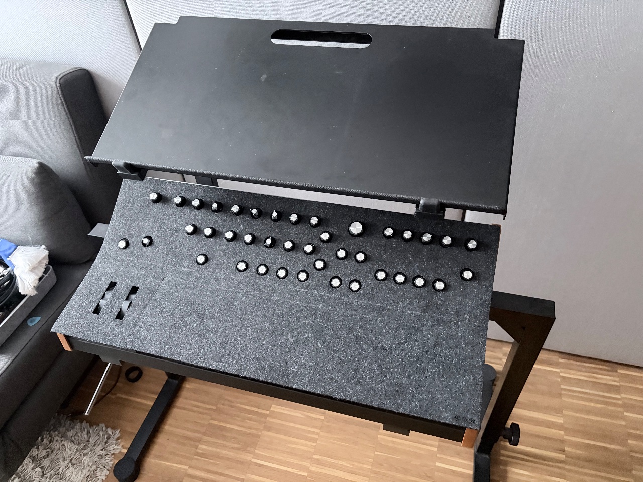 Verkaufe einen Moog Synthesizer 37 in einem nahezu unbenutzten und daher neuwertigen Zustand. OVP, Benutzerhandbuch und Poster sind dabei. Zusätzlich gibt es einen passenden Decksaver aus Filz. Der Ständer steht ebenfalls extra zum Verkauf.