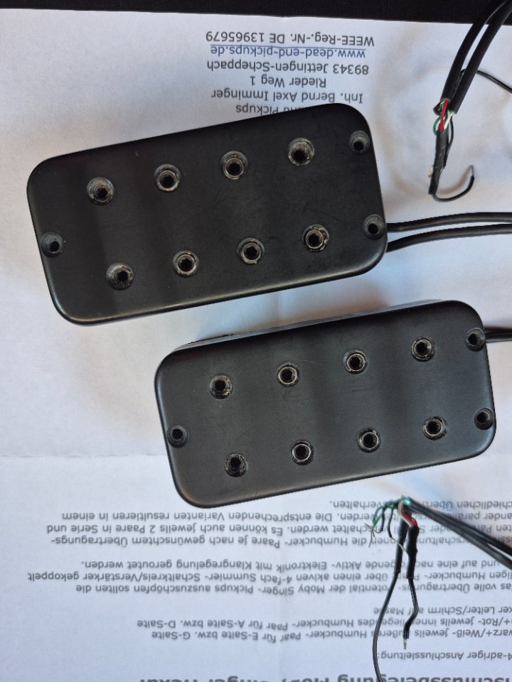 Verschaltet als Humbucker je Saite, jeweils separat als Kabel herausgeführt.
