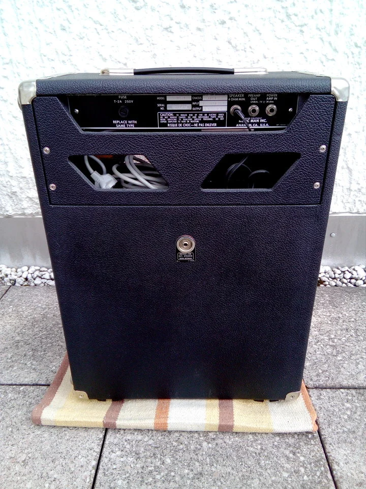 Aufgrund der Nachfragen: Bei diesem Verstärker handelt es sich NICHT um die Neuauflage, die vor einigen Jahren in Zusammenarbeit mit Markbass von Music Man erschienen ist! Dieser Combo bringt mit dem eingebauten 8-Ohm-Lautsprecher 80 Watt, an 4 Ohm 120 Watt.