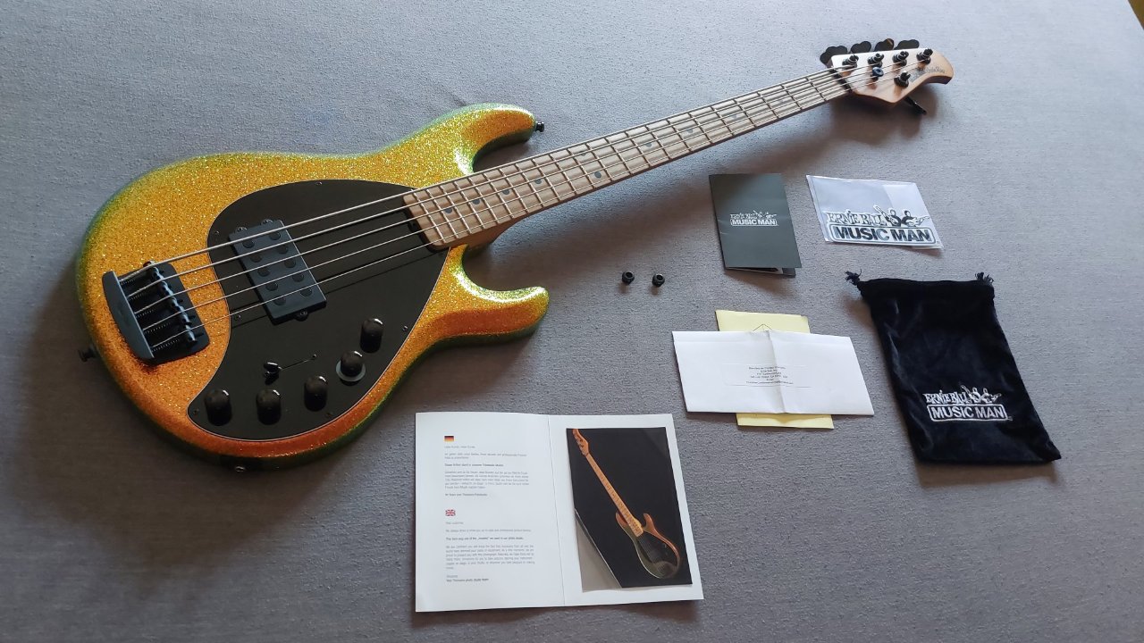 ich habe hier meinen Music Man DarkRay 5 im atemberaubenden "Gold Bar" Finish abzugeben.