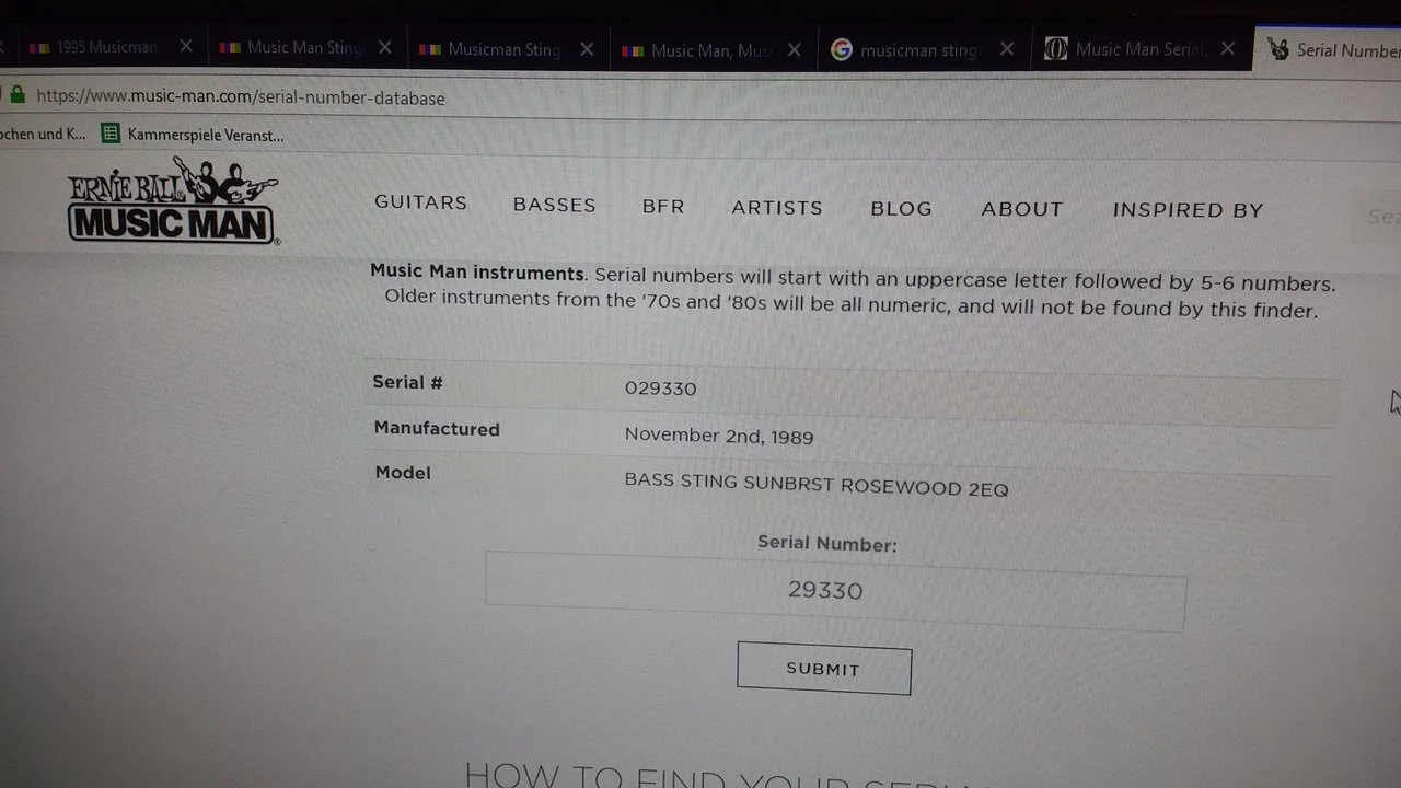 Seriennummer 029330 ist registriert in der Music Man Database: